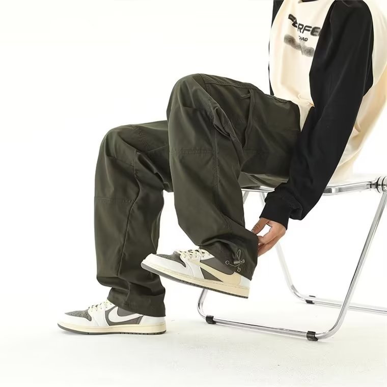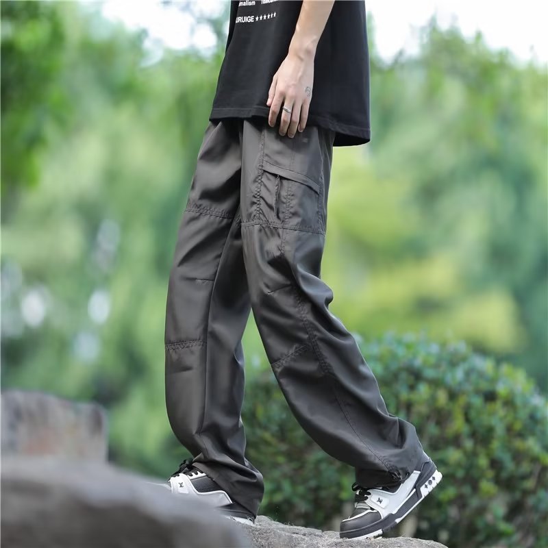 여름 남성용 아메리칸 기능성 아웃도어 속건성 작업복, 다재다능하고 트렌디한 드로스트링 루즈 스트레이트 캐주얼 어썰트 팬츠스토어 가기