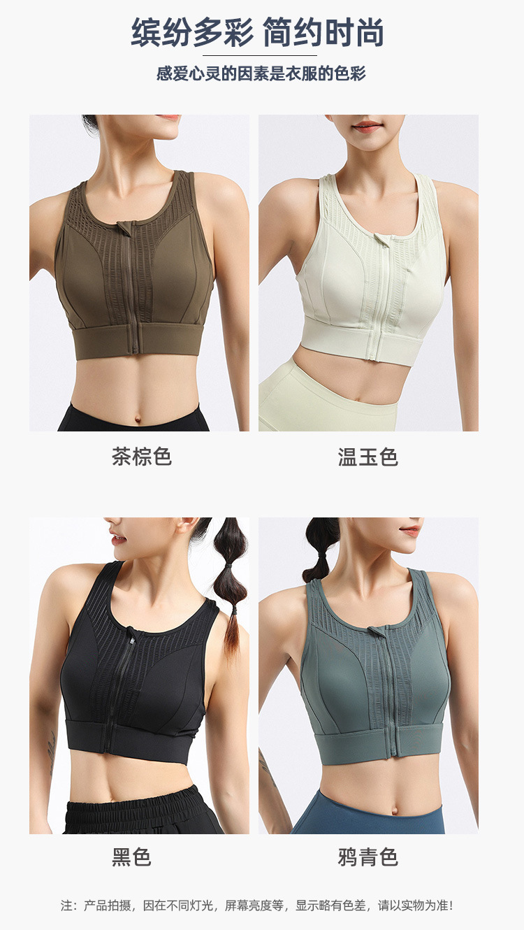 고강도 프론트 지퍼 스포츠 속옷 여성용 알몸 감지기 빠른 건조 충격 러닝 뷰티 백 피트니스 브라 요가 조끼