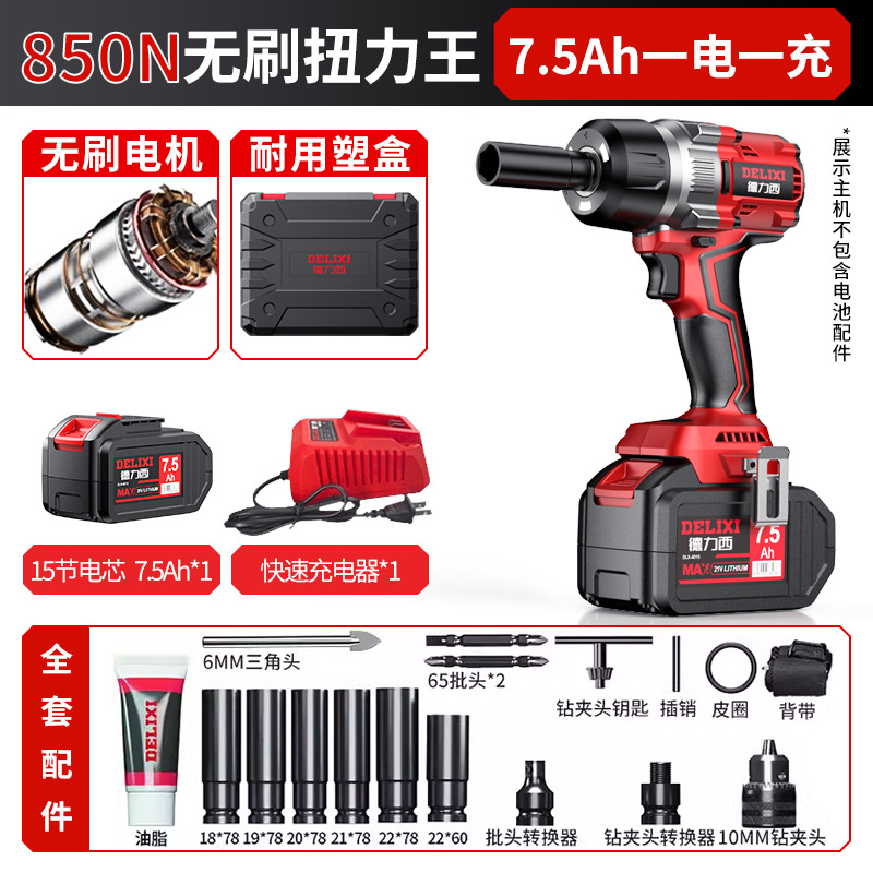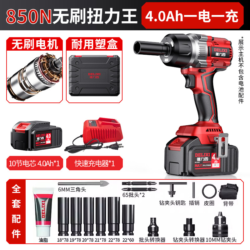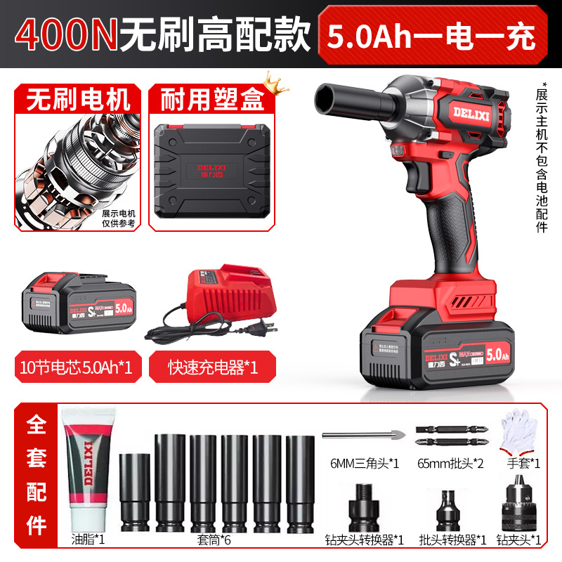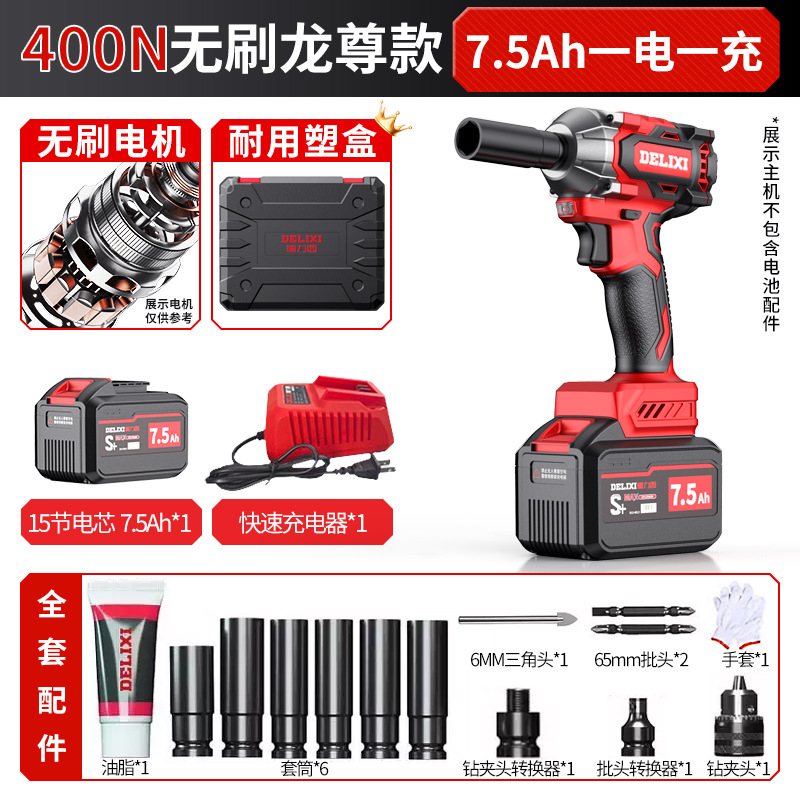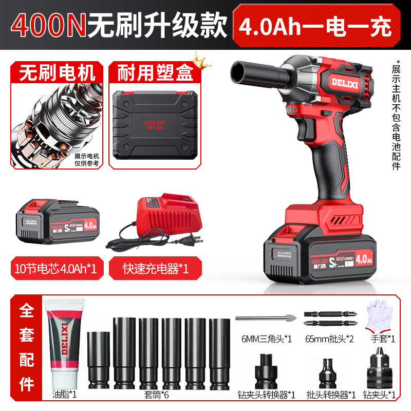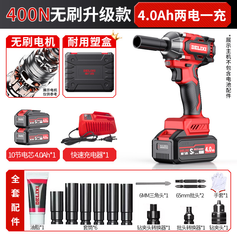 Delixi 브러시리스 전기 렌치 전기 충격 바람 총 큰 토크 작은 강철 총 토크 렌치 충전 전기 공구스토어 가기