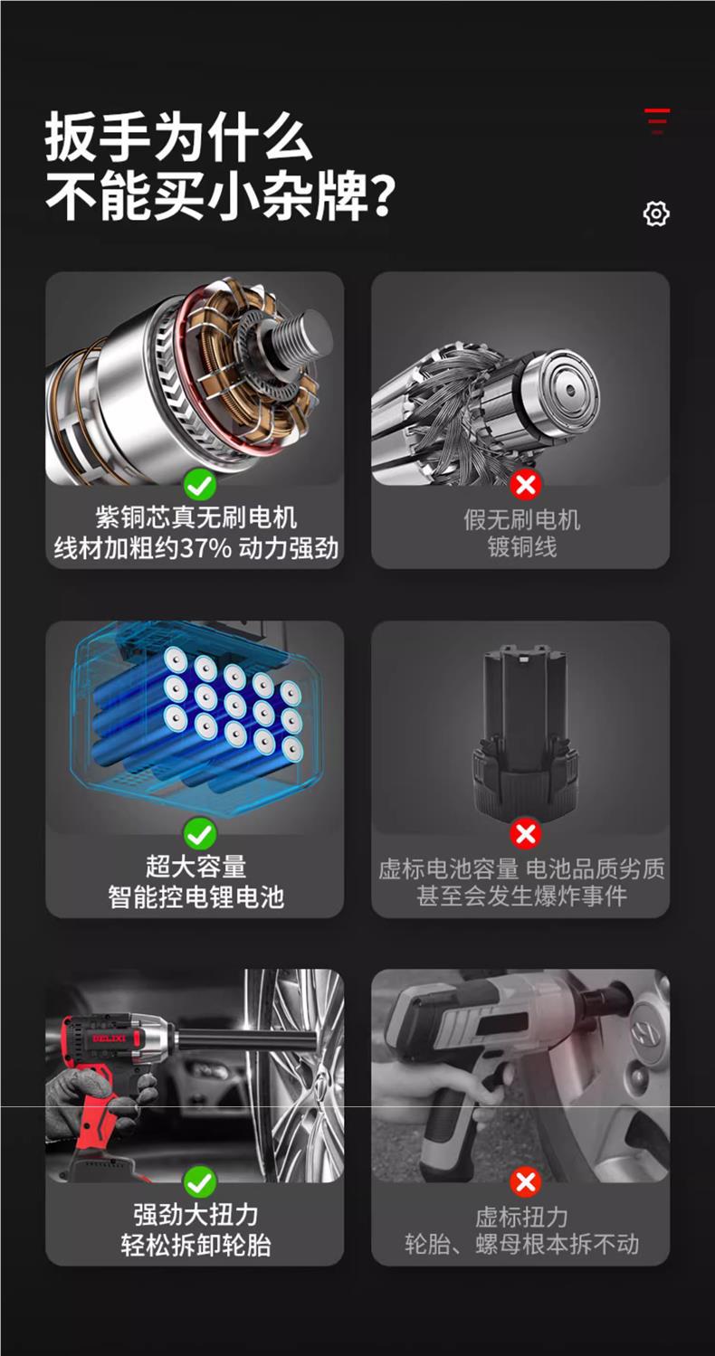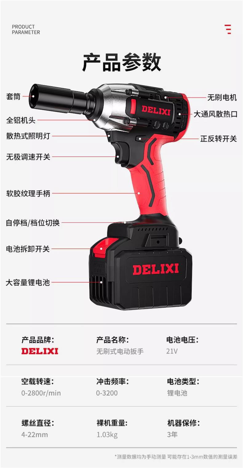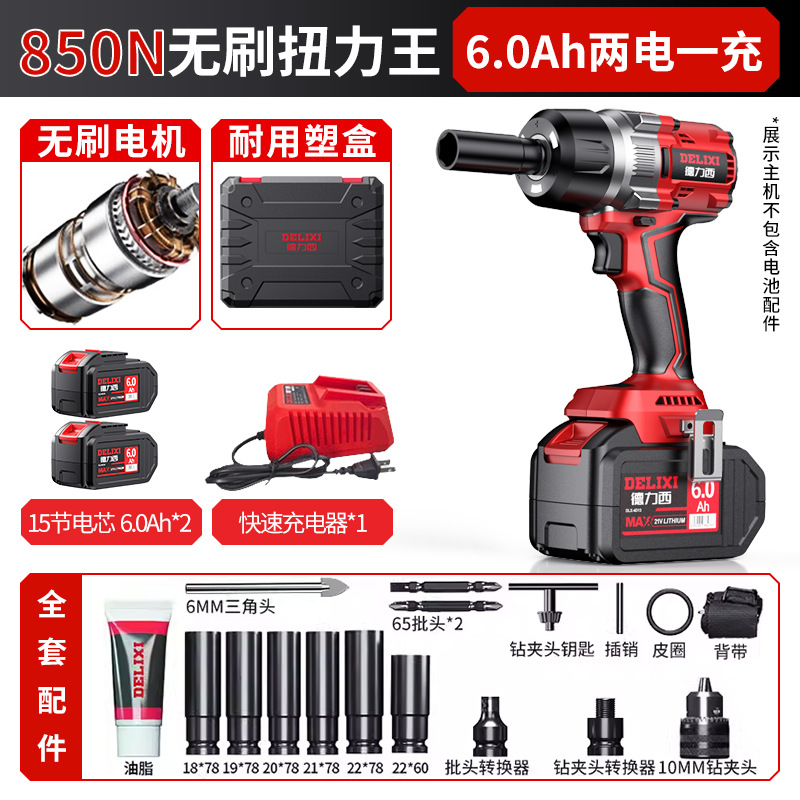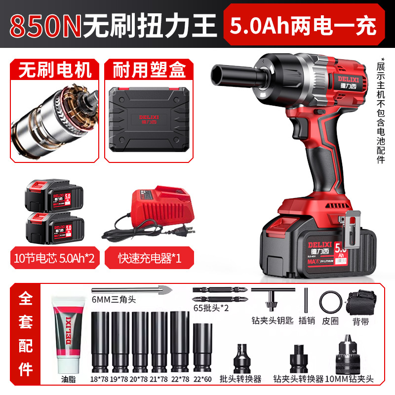 Delixi 브러시리스 전기 렌치 전기 충격 바람 총 큰 토크 작은 강철 총 토크 렌치 충전 전기 공구스토어 가기