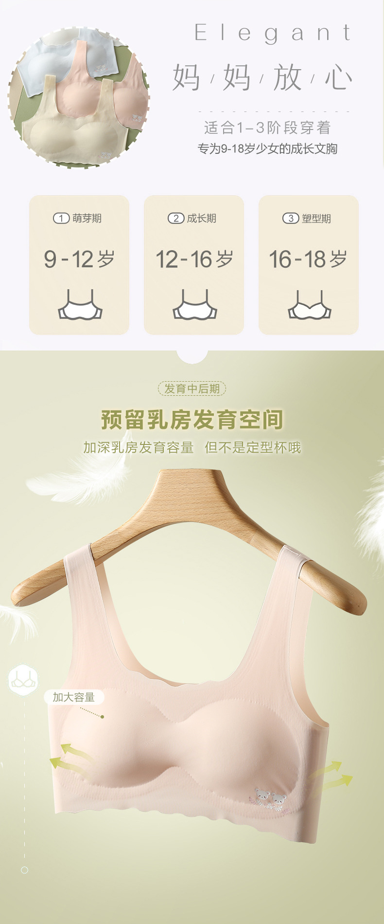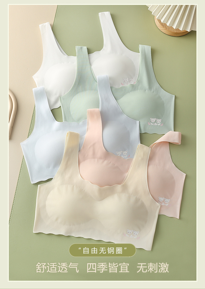 성장하는 소녀 브래지어 추적없는 편안한 경량 사계절 작은 조끼를 입고 중학생을위한 간단한 통기성 속옷