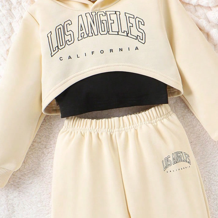 국경 간 유럽과 미국의 아동복 가을과 겨울 소녀 레저 스포츠 인쇄 후드 땀 솔리드 컬러 슬링 바지 3 피스 세트