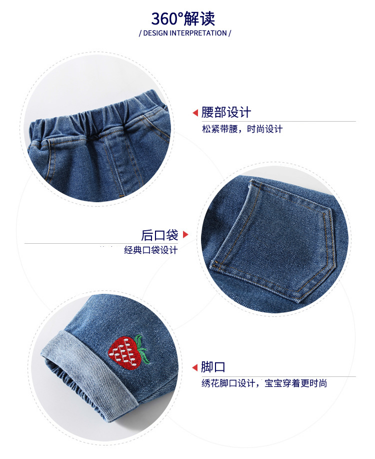 소녀 바지 봄과 가을 2024 새로운 세련된 어린이 플립 딸기 올 매치 패션 한국 청바지 아기 소녀스토어 가기