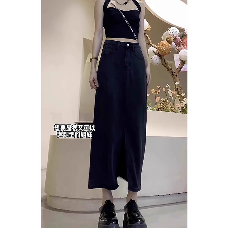 높은 허리 스플릿 텐셀 데님 스커트 여성의 2024 새로운 여름 플러스 사이즈 통통녀 배 모양의 그림 A 자형 중간 길이 스커트스토어 가기