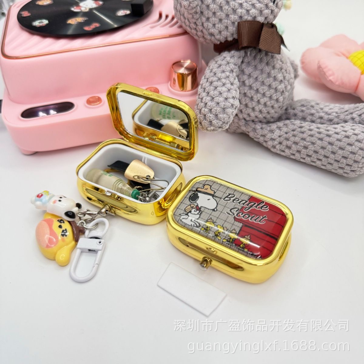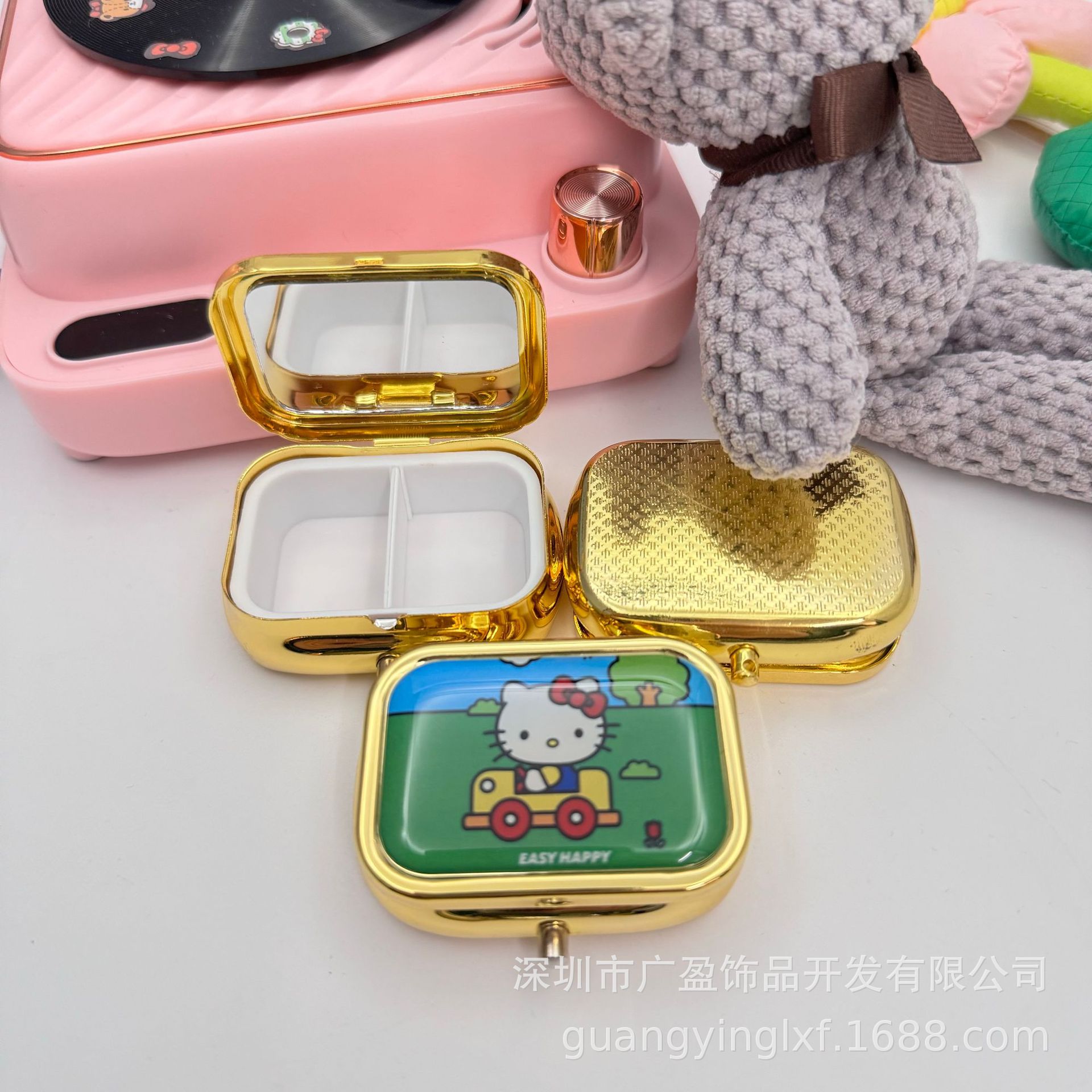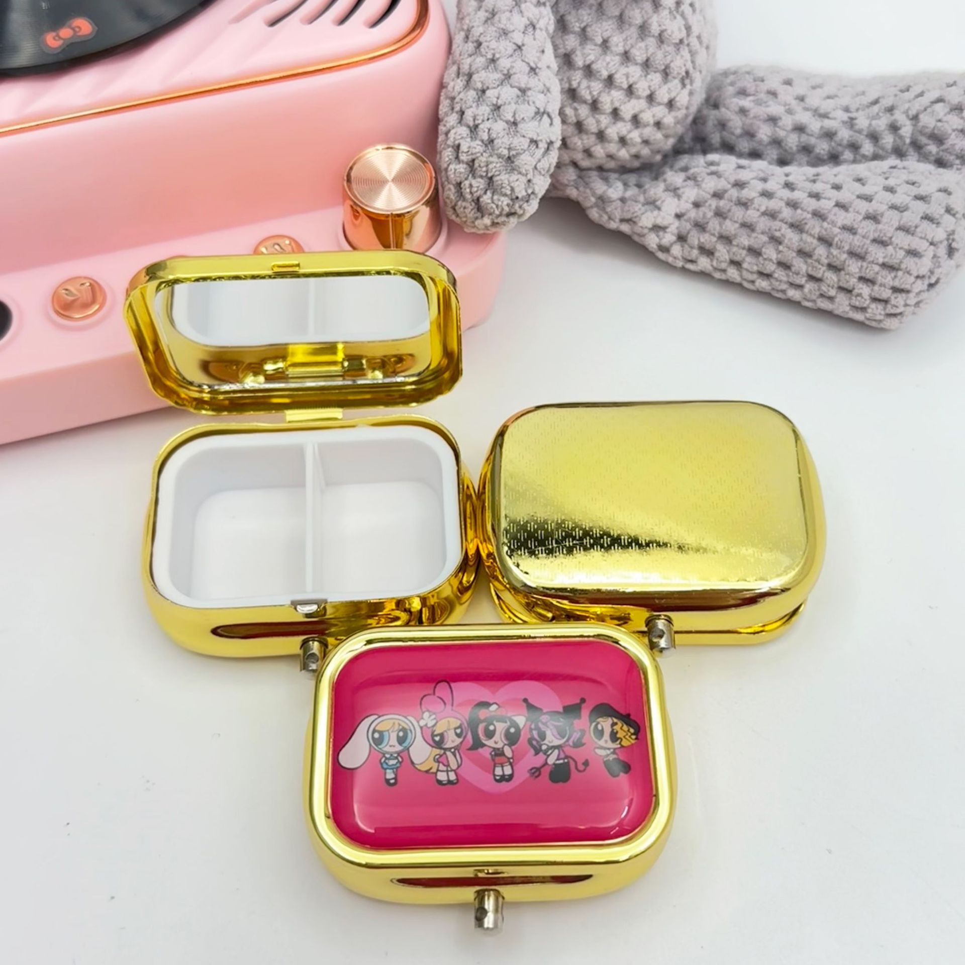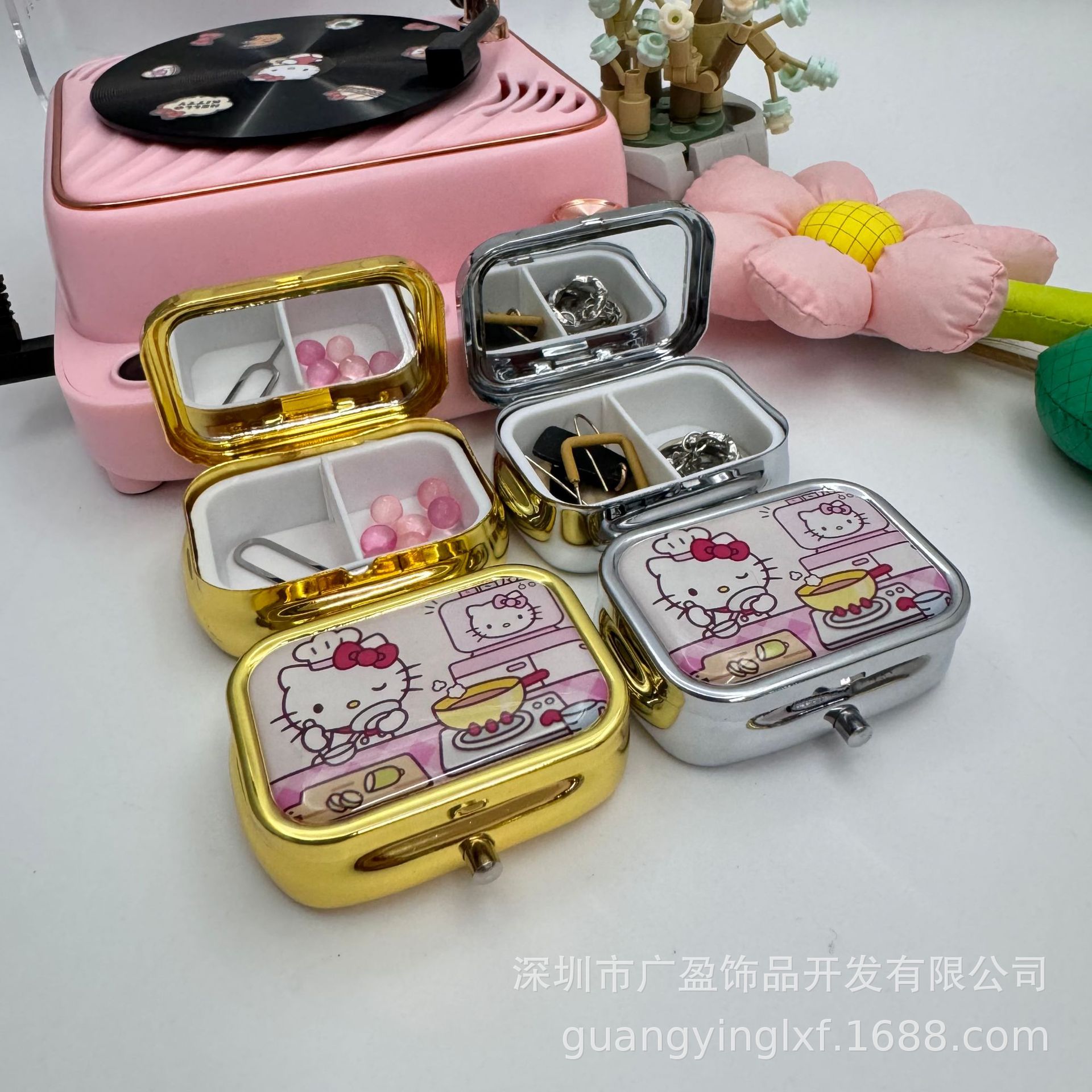 미니 만화 고급 금속 의학 상자 휴대용 태블릿 서브 박스 작은 보석 보관 마무리 습기 방지 밀봉 휴대용스토어 가기