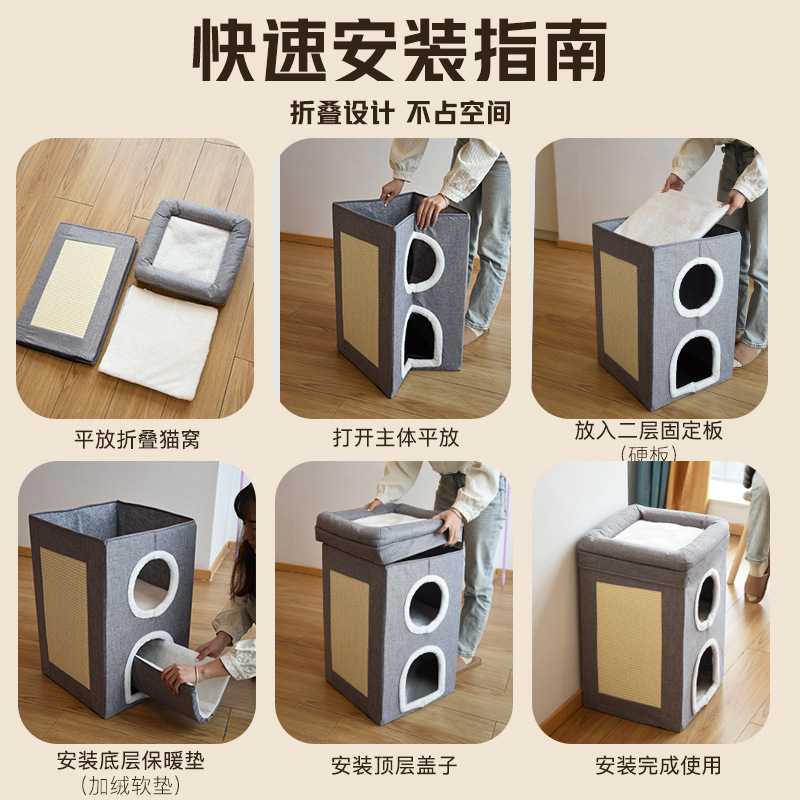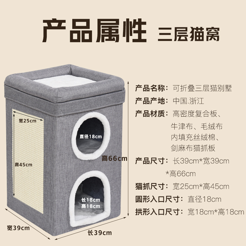 아마존 폭발 고양이 둥지 3 층 따뜻한 접이식 사계절 보편적 인 애완 동물 고양이 둥지 소스 제조업체 재고 도매스토어 가기
