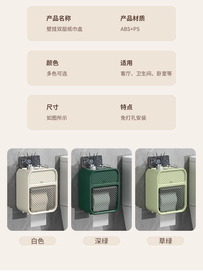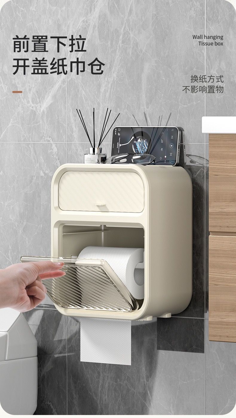화장실 벽걸이 형 티슈 박스 스토리지 랙 라이트 럭셔리 욕실 홀프리 더블 레이어 화장실 롤 종이 상자