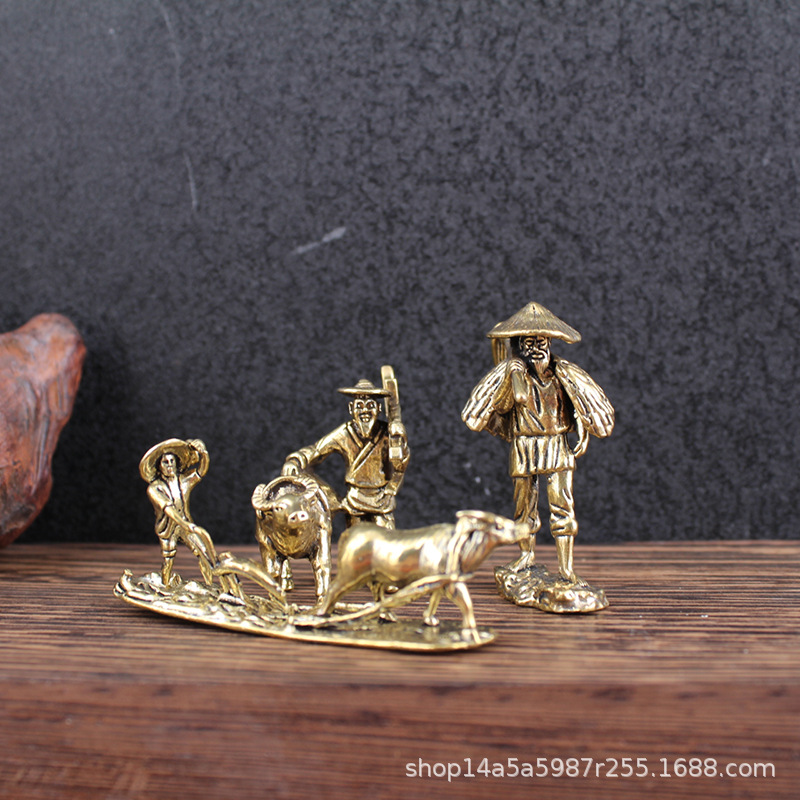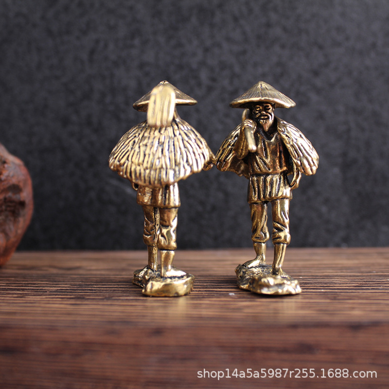 황동 코어 레인 코트 노인 데스크탑 향수 장식품 순수한 구리 쟁기질 농부 홈 복고풍 향수 장식 장식품 도매스토어 가기