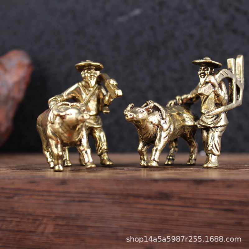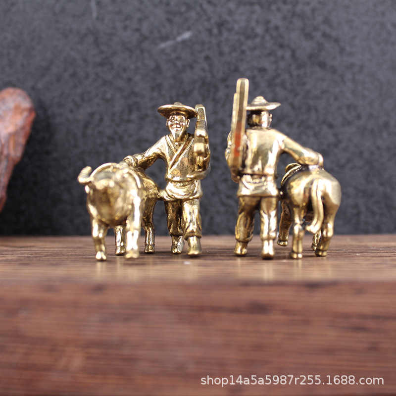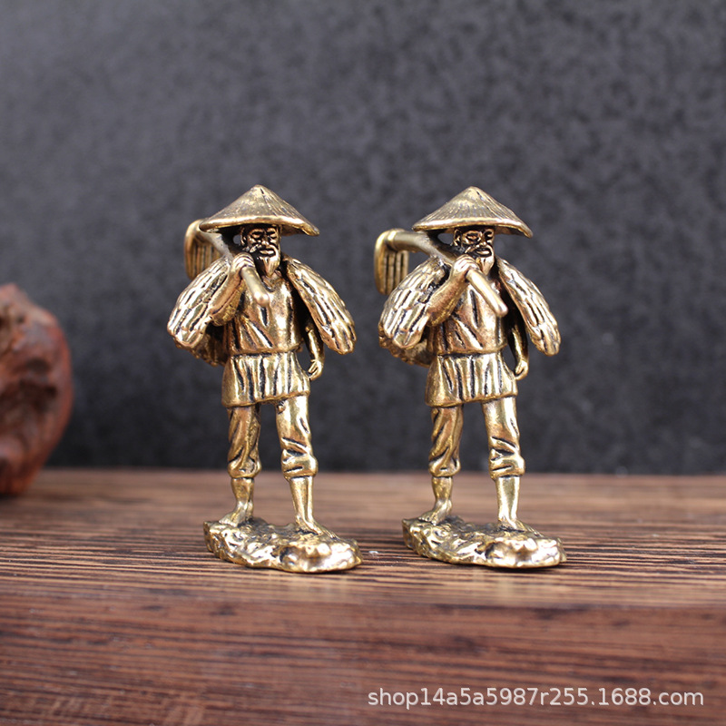 황동 코어 레인 코트 노인 데스크탑 향수 장식품 순수한 구리 쟁기질 농부 홈 복고풍 향수 장식 장식품 도매