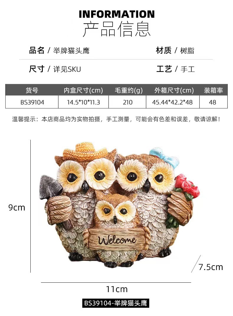 국경 간 새로운 올빼미 브랜드 환영 수지 공예 장식품 홈 정원 안뜰 데스크탑 장식 장식품스토어 가기