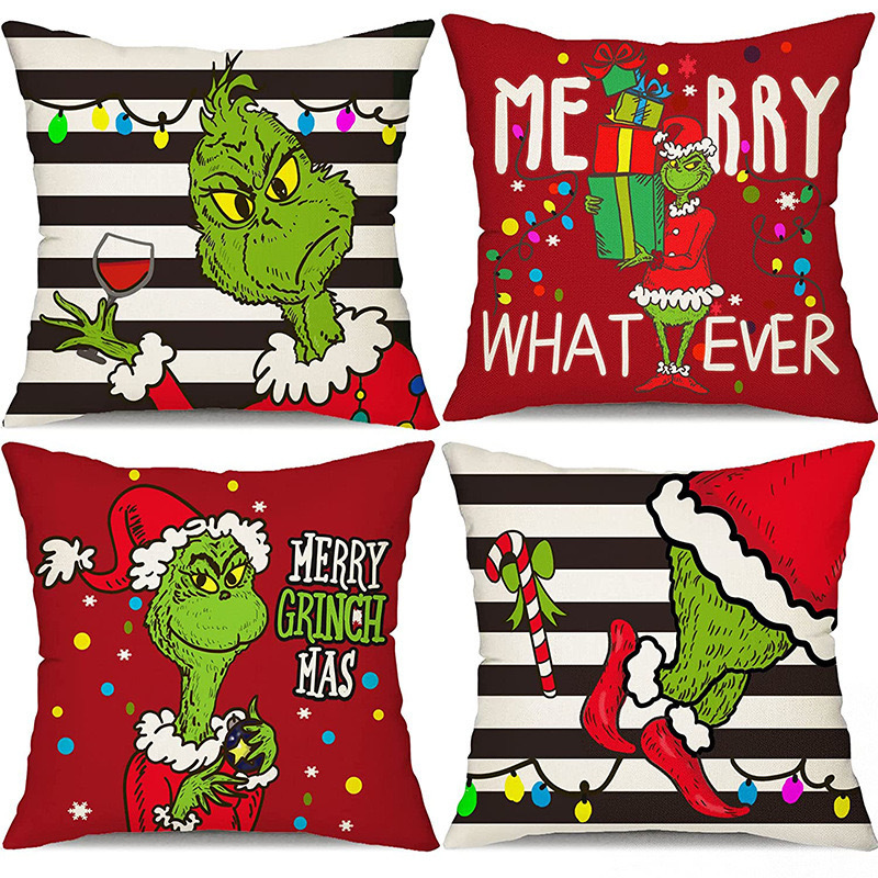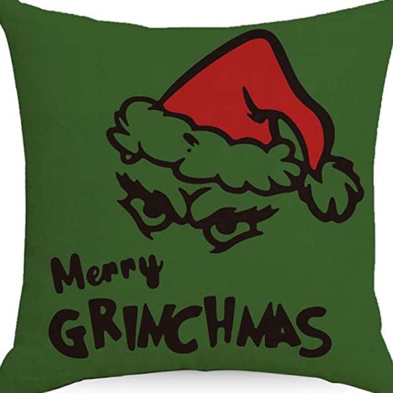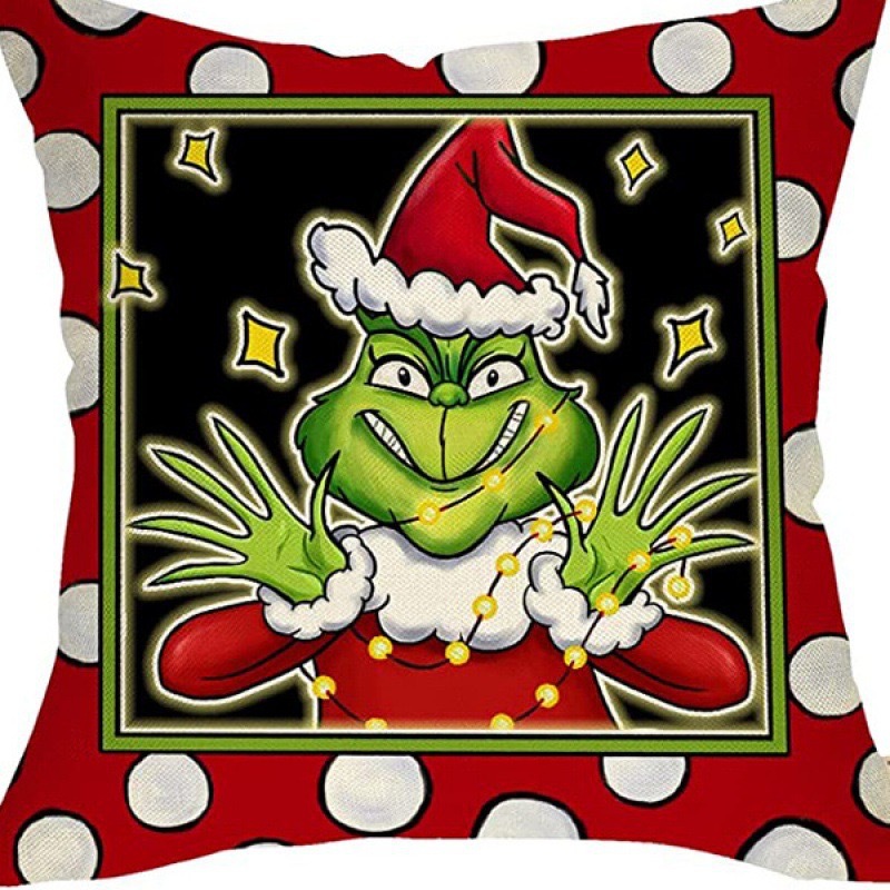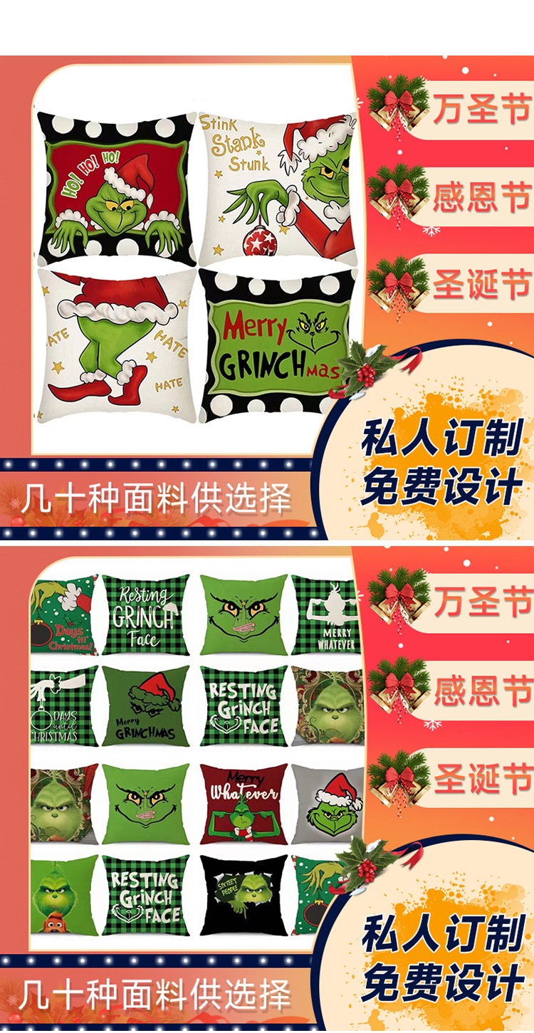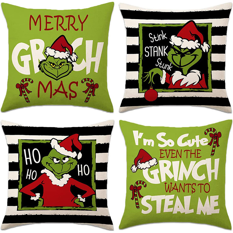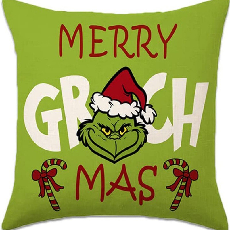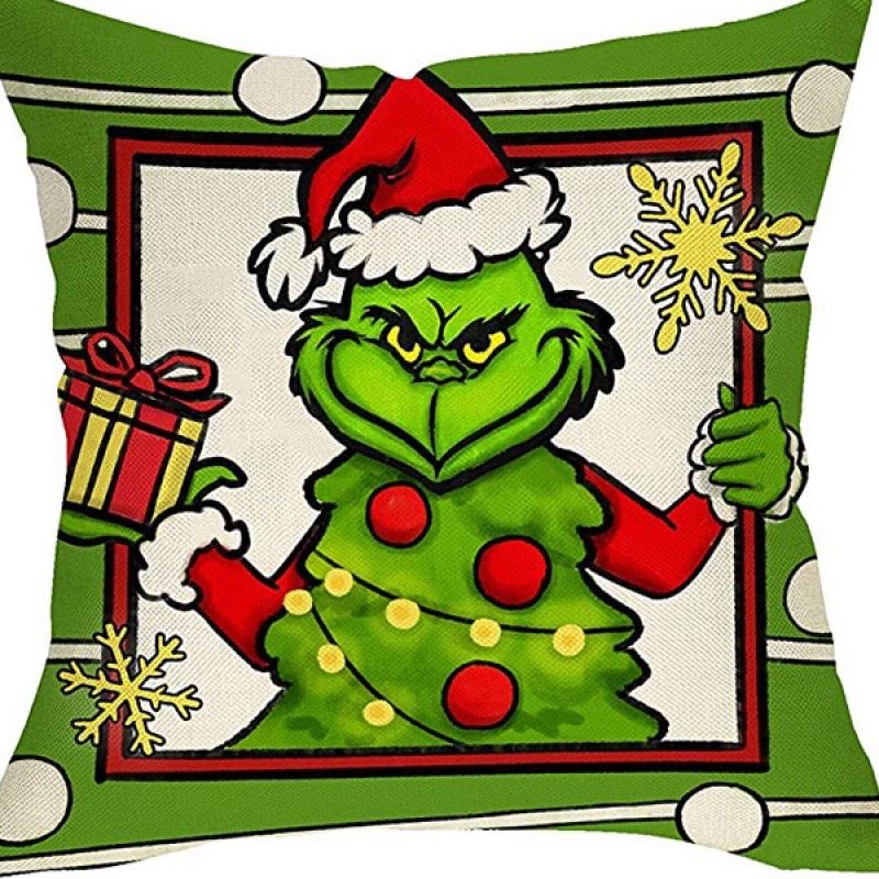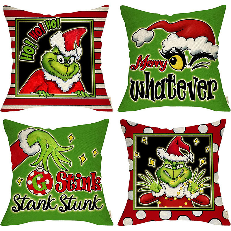 신제품 크로스보더 인기 크리스마스 녹색 머리 괴물 그린치 린넨 베개 커버 인쇄 패브릭 재미 있은 디자인 베개 커버스토어 가기