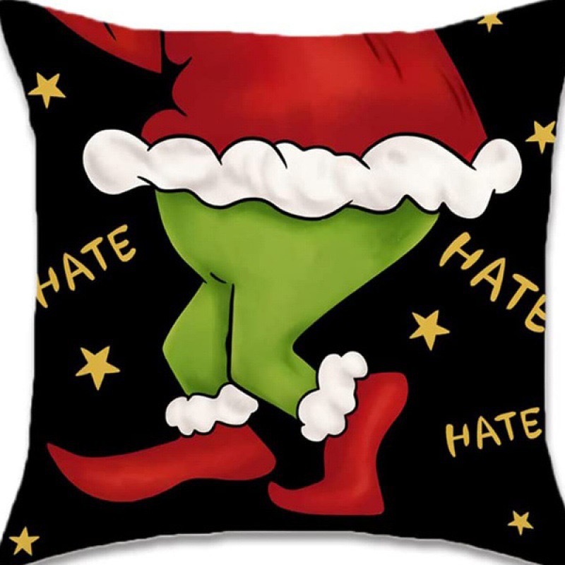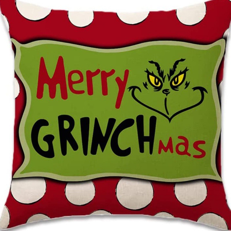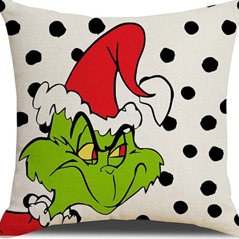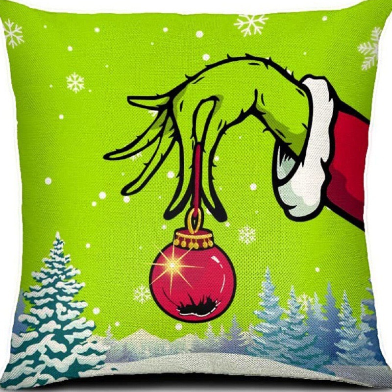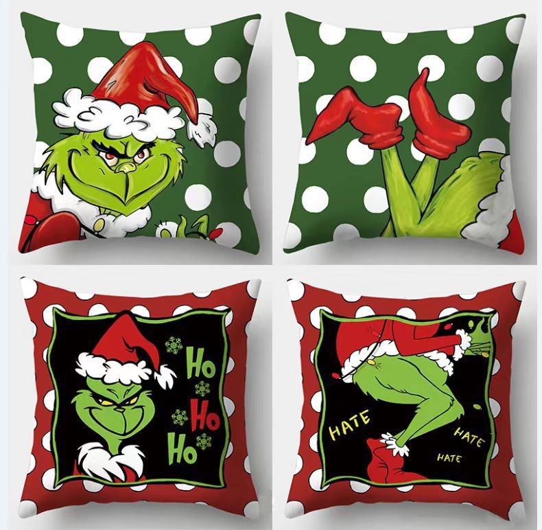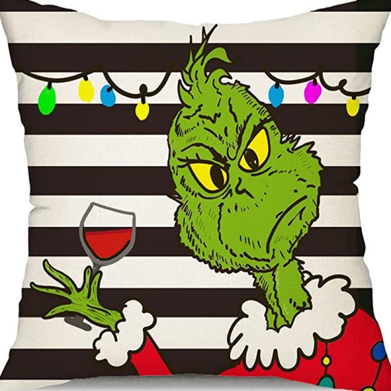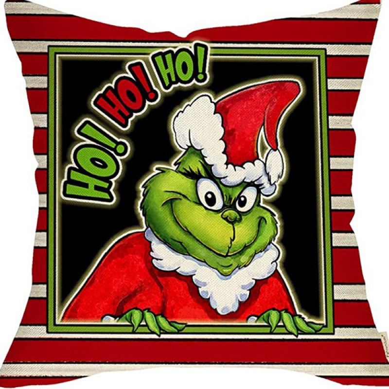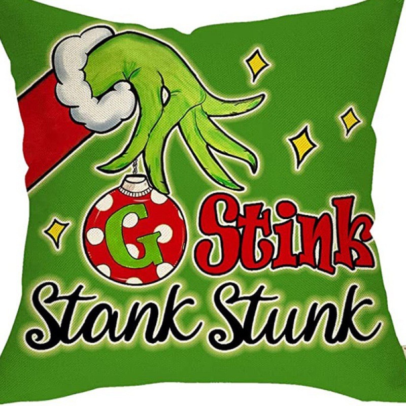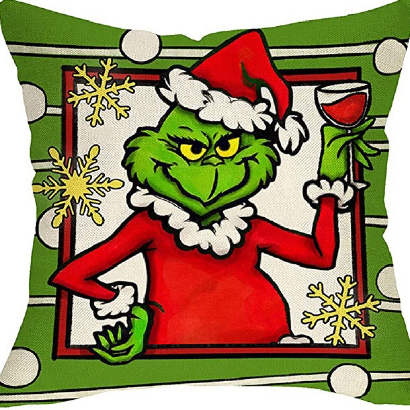 신제품 크로스보더 인기 크리스마스 녹색 머리 괴물 그린치 린넨 베개 커버 인쇄 패브릭 재미 있은 디자인 베개 커버스토어 가기