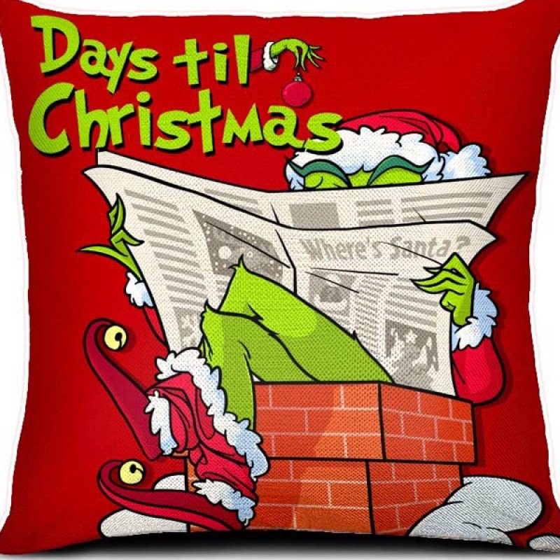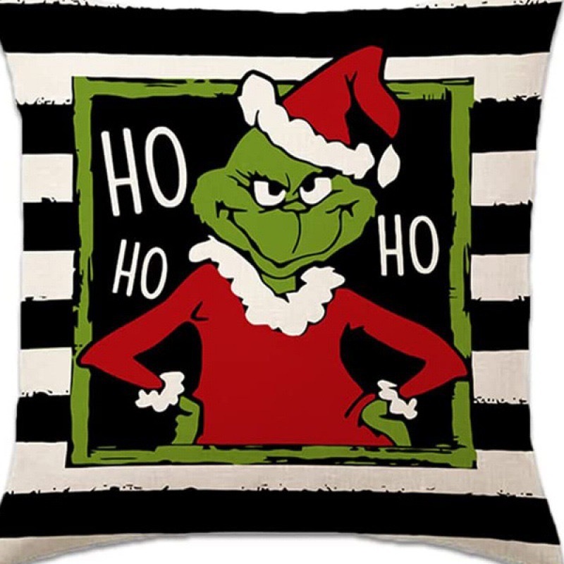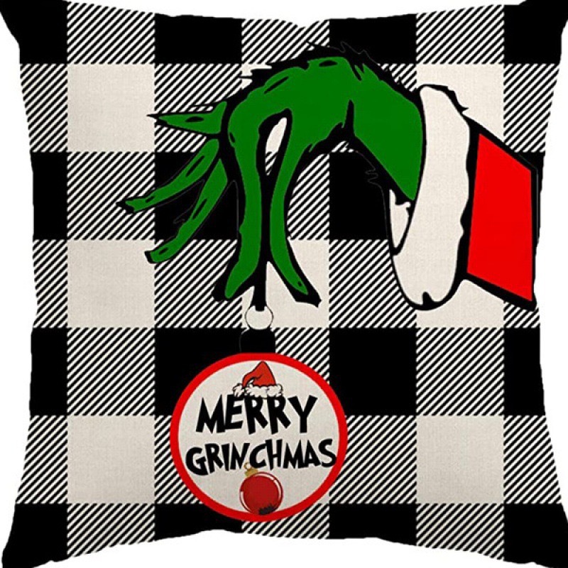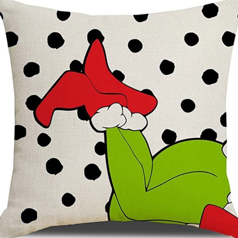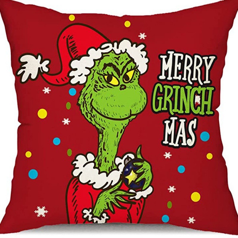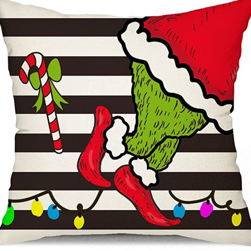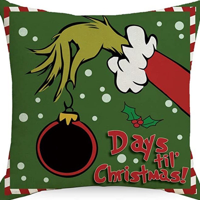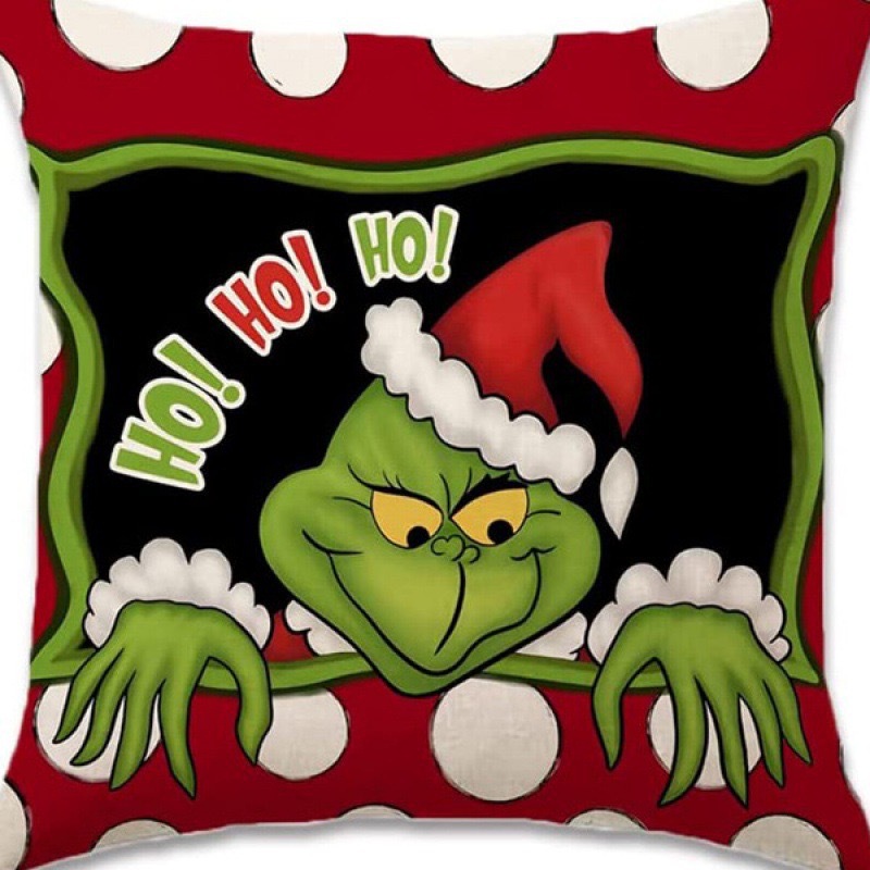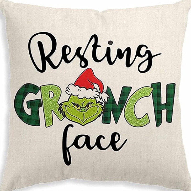 신제품 크로스보더 인기 크리스마스 녹색 머리 괴물 그린치 린넨 베개 커버 인쇄 패브릭 재미 있은 디자인 베개 커버스토어 가기