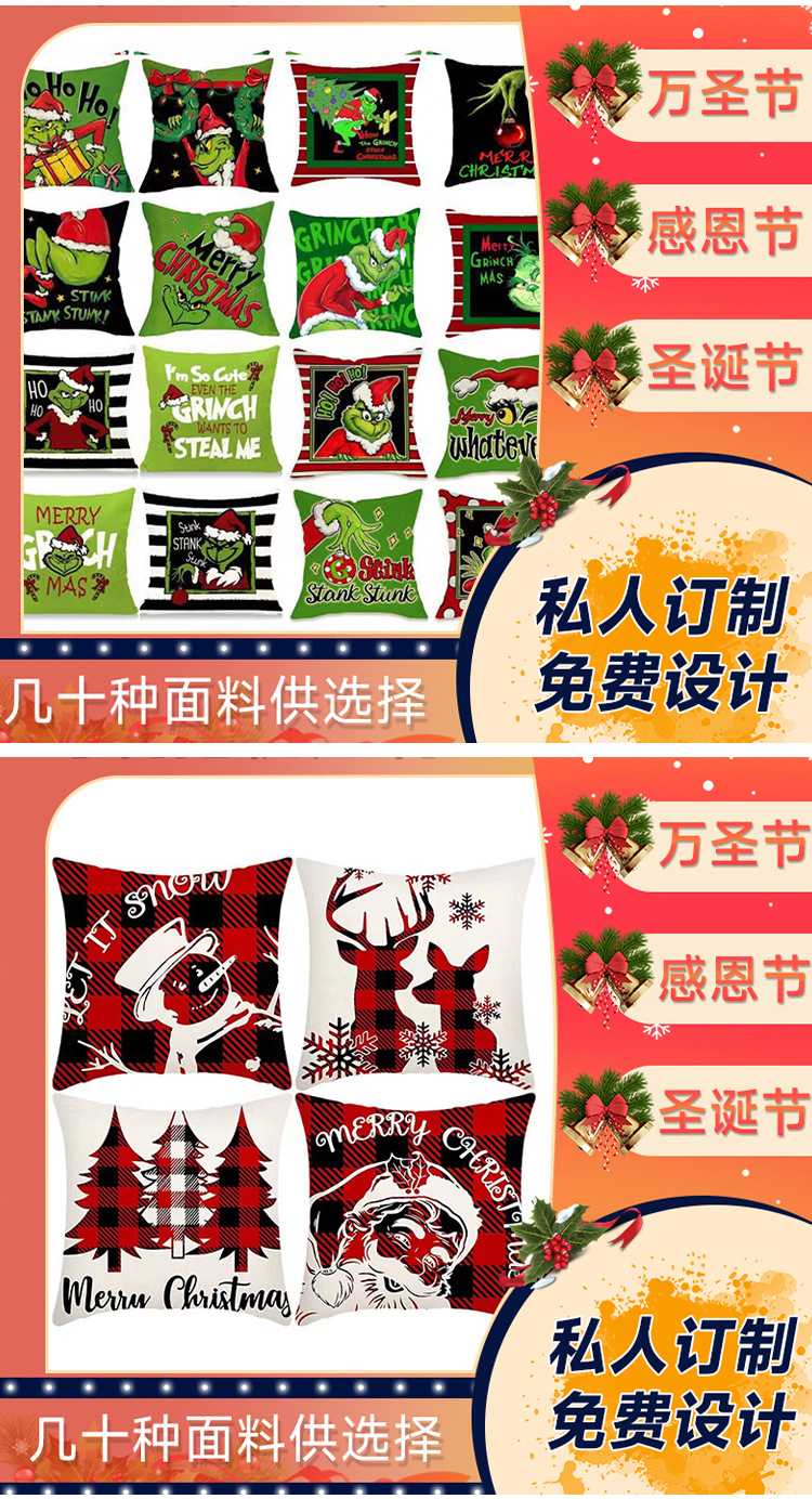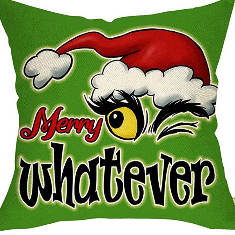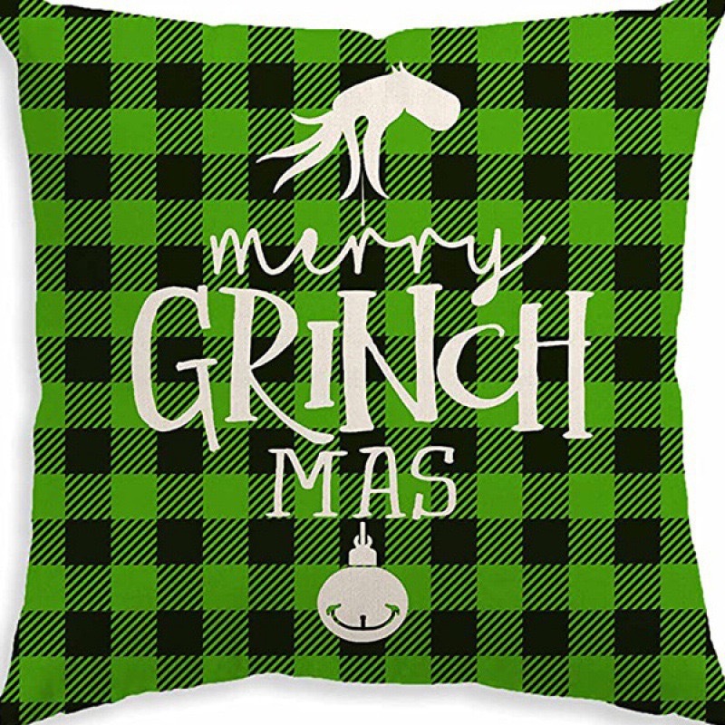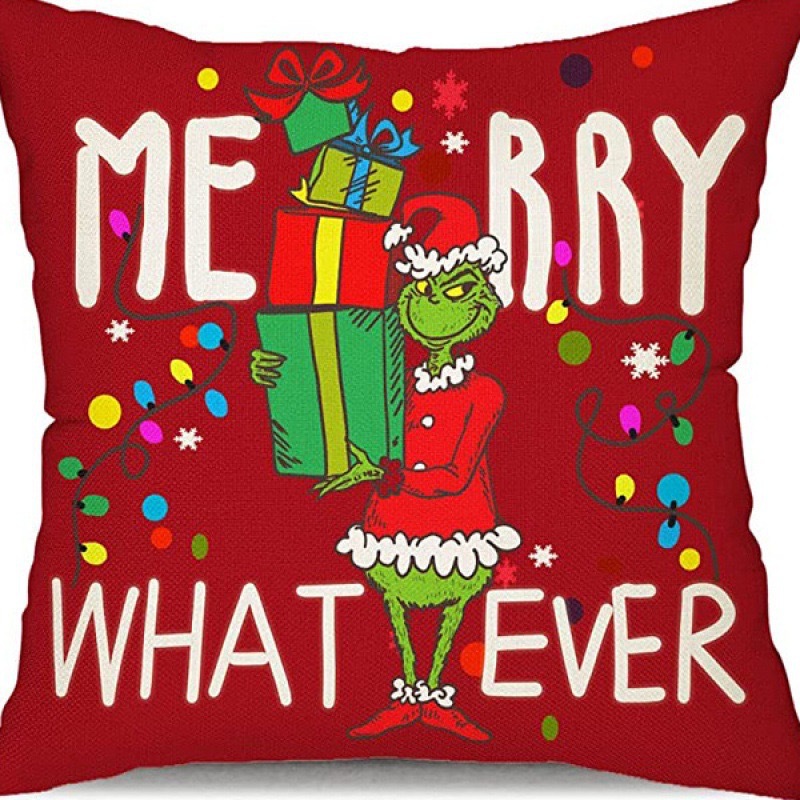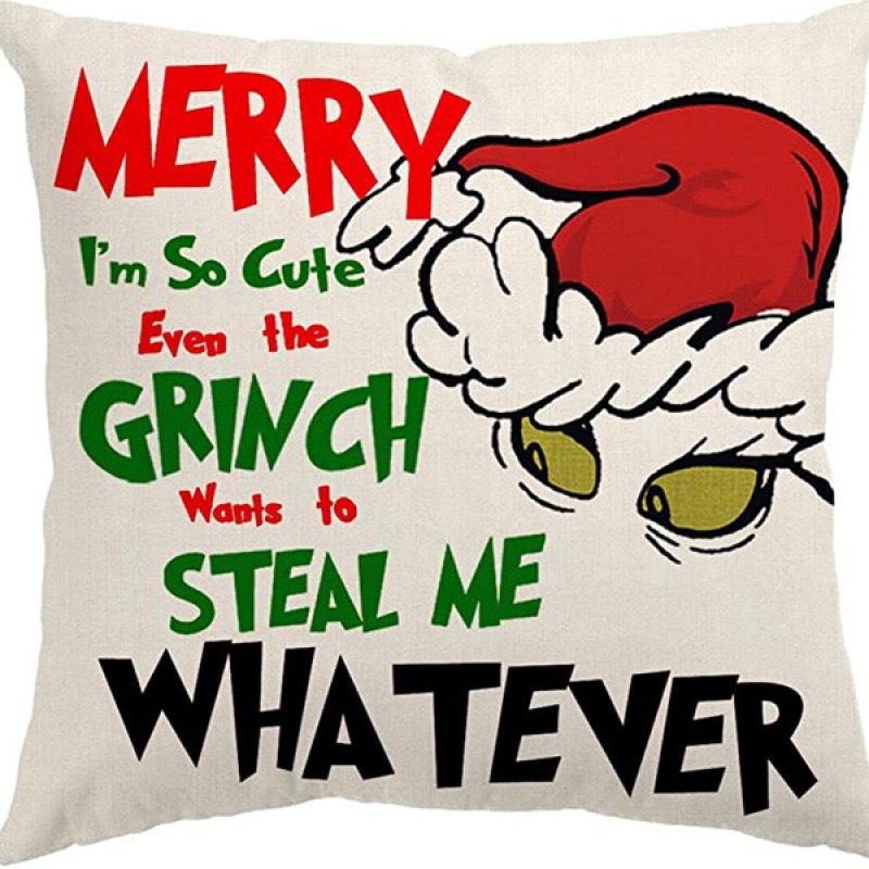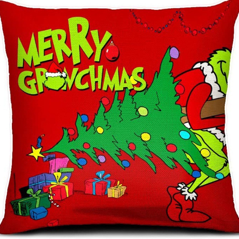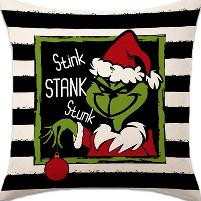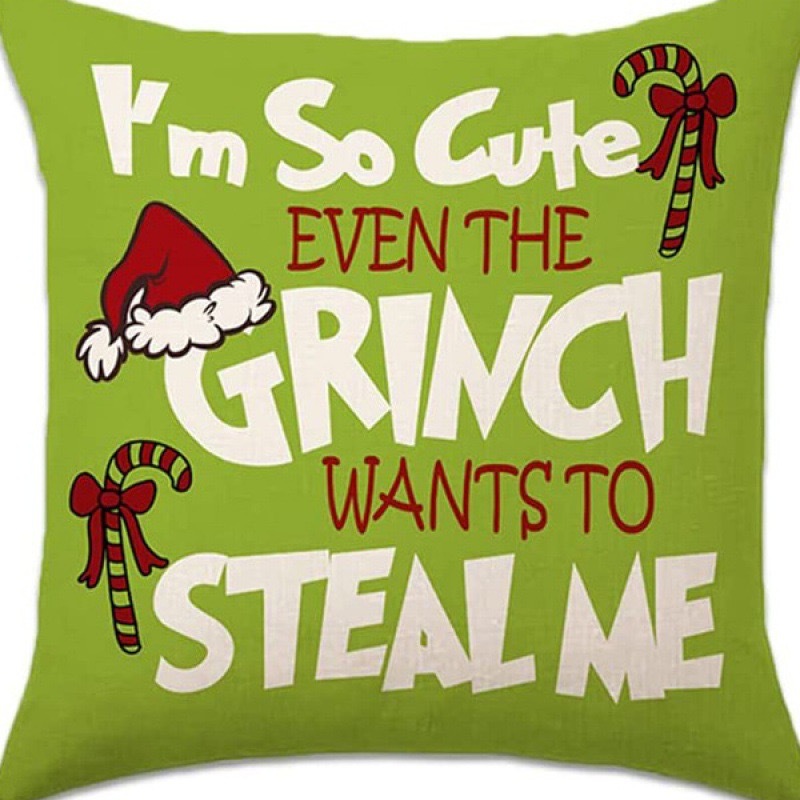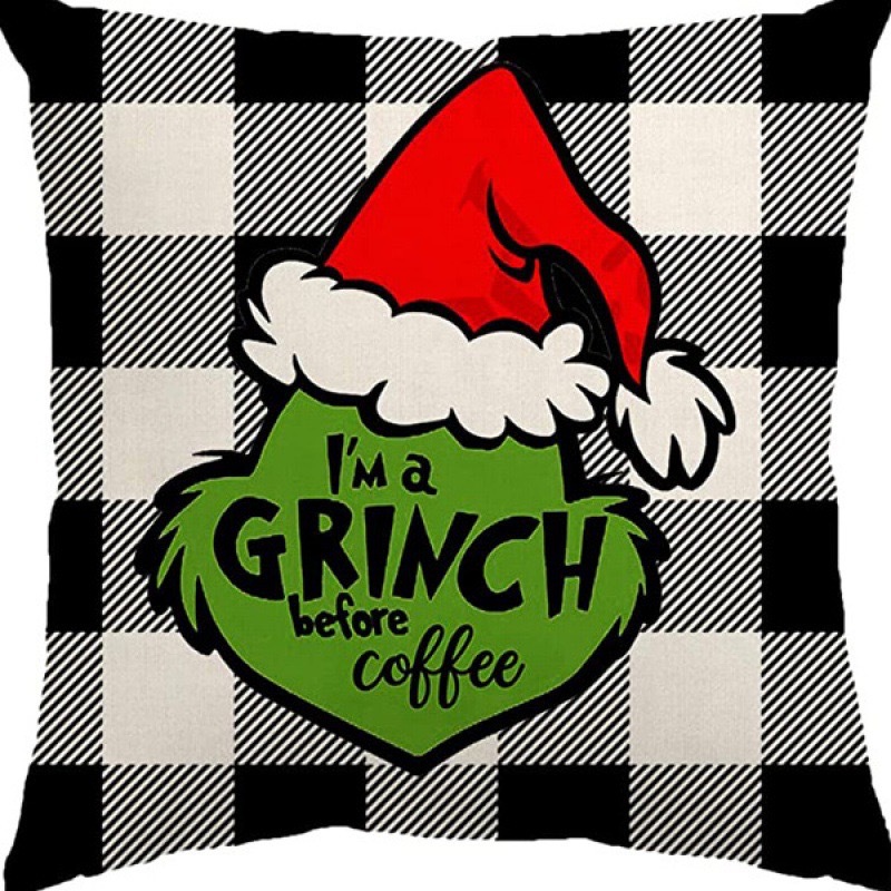 신제품 크로스보더 인기 크리스마스 녹색 머리 괴물 그린치 린넨 베개 커버 인쇄 패브릭 재미 있은 디자인 베개 커버스토어 가기