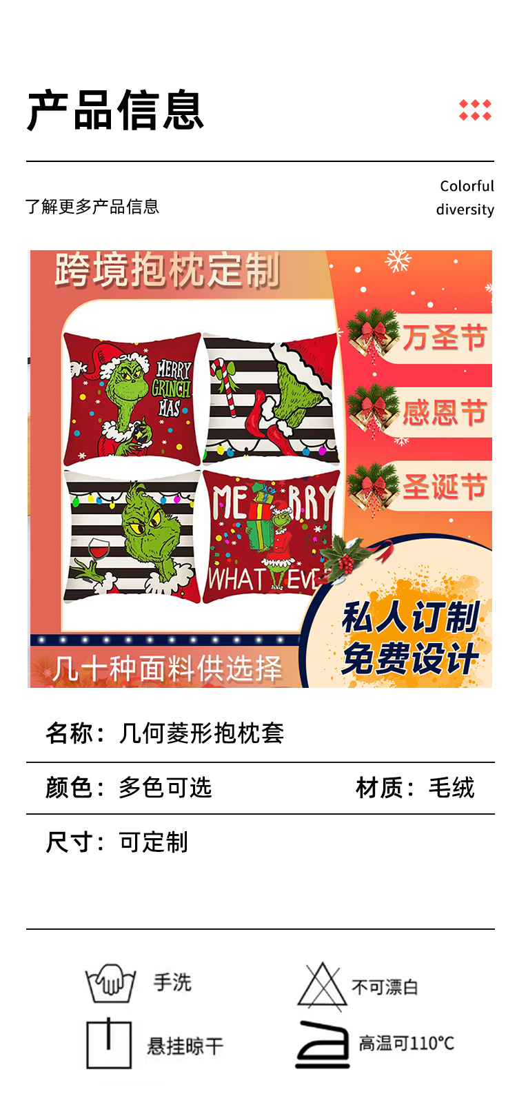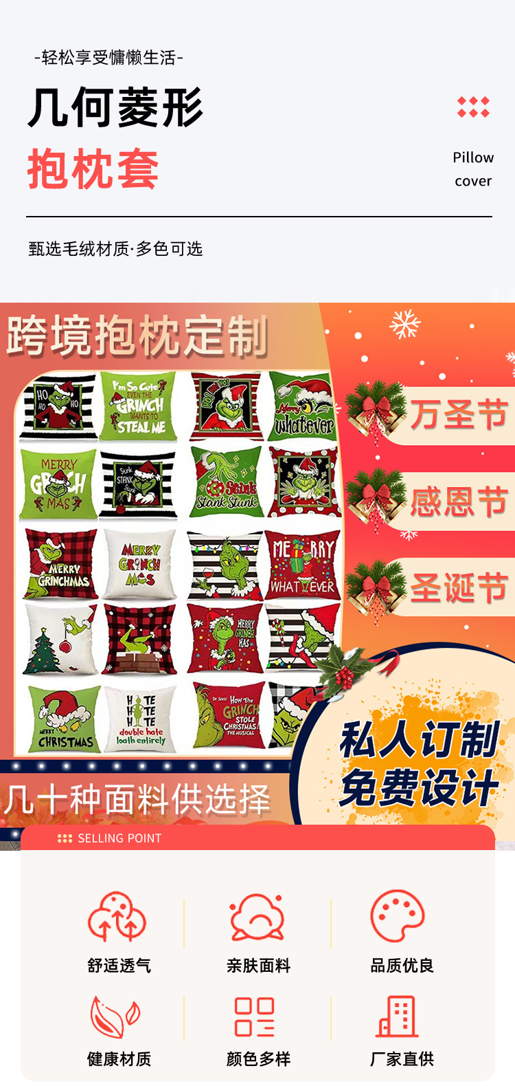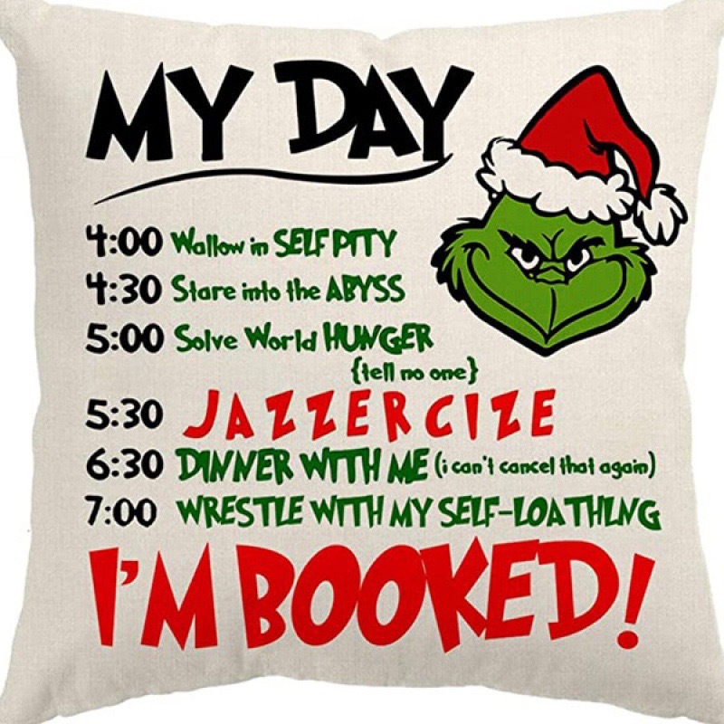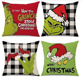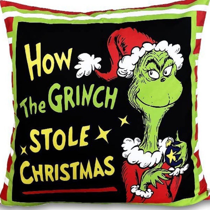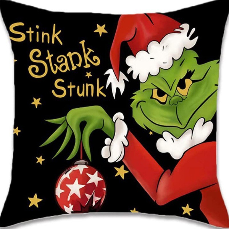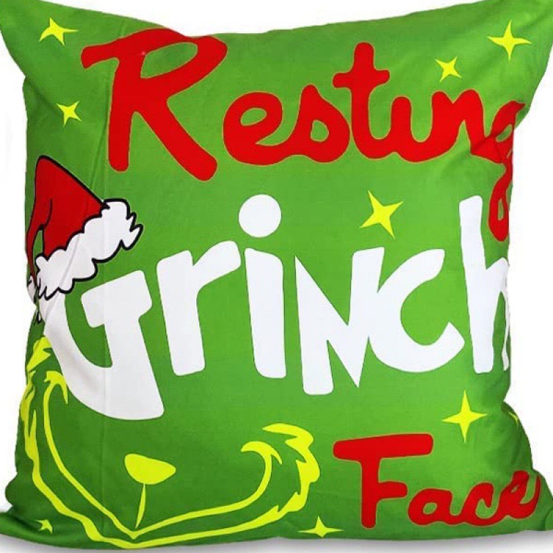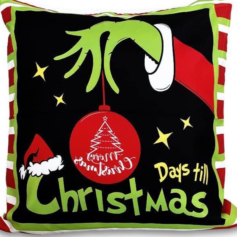 신제품 크로스보더 인기 크리스마스 녹색 머리 괴물 그린치 린넨 베개 커버 인쇄 패브릭 재미 있은 디자인 베개 커버스토어 가기