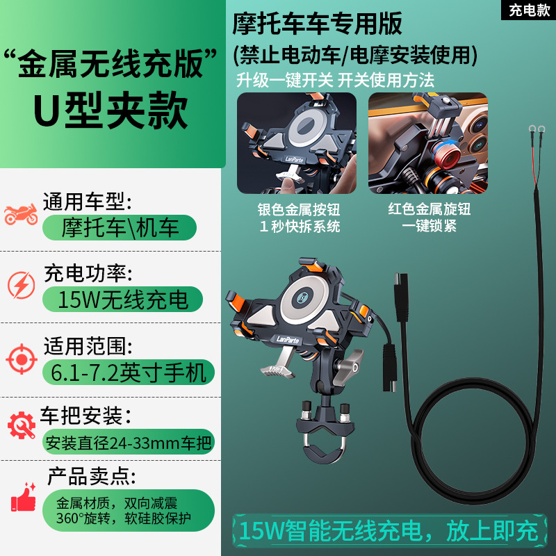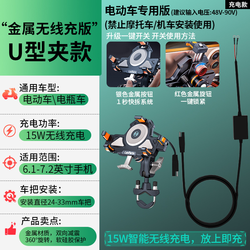 • UBA-MC-U (오토바이 메탈 무선 충전 버전) U자형 클립 모델