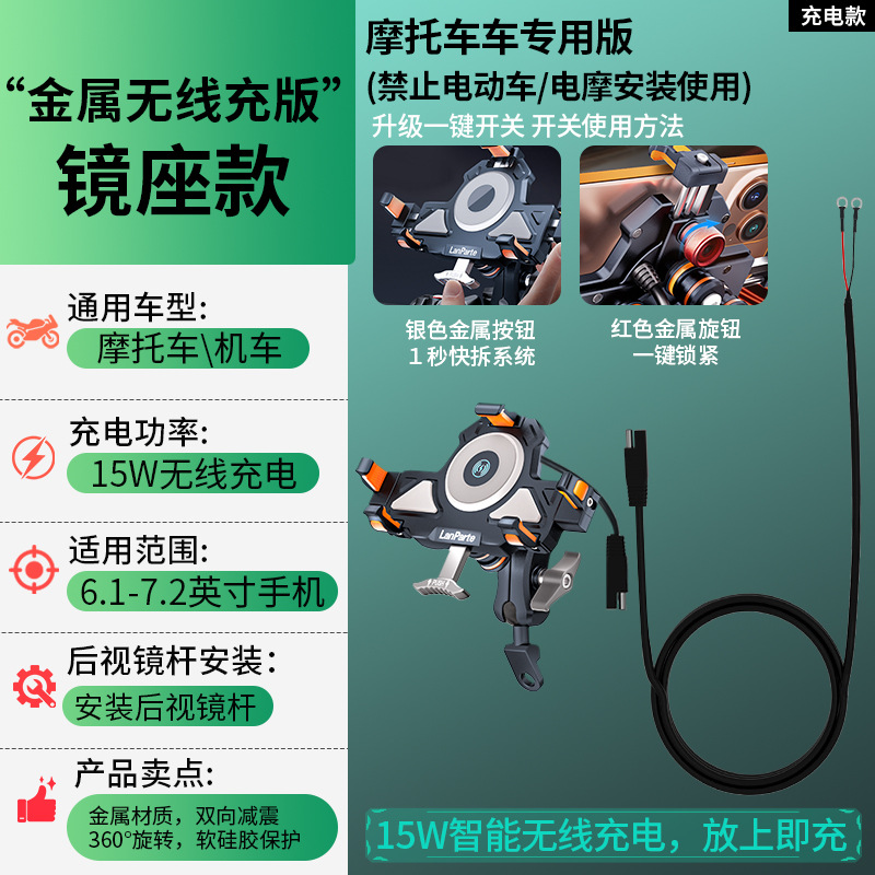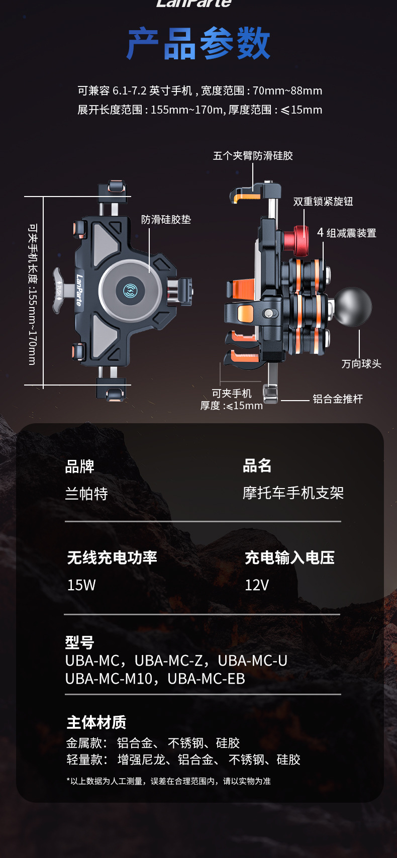 • UBA-MC-Z (오토바이 메탈 무선 충전 버전) 미러 마운트형