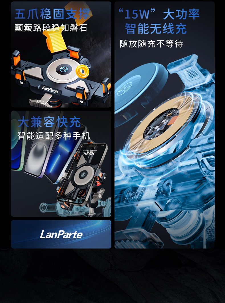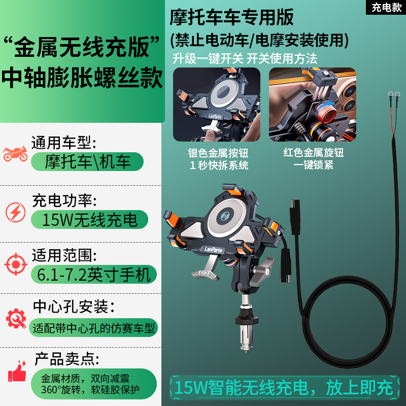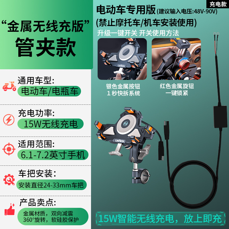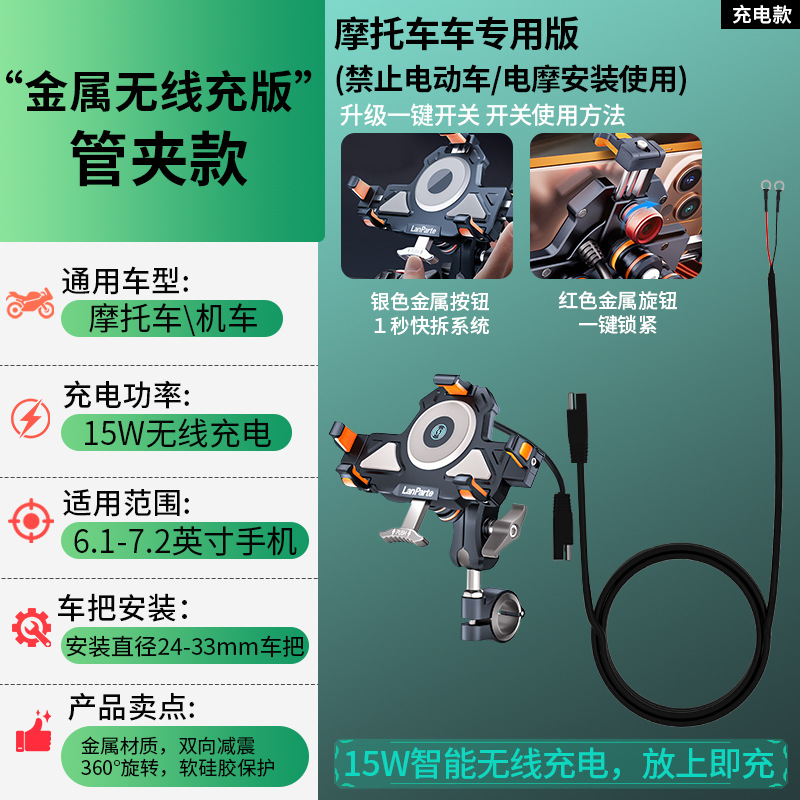 알루미늄 합금 오토바이 전기차 무선 충전 휴대폰 거치대 방진 라이딩 네비게이션 전용 휴대폰 거치대