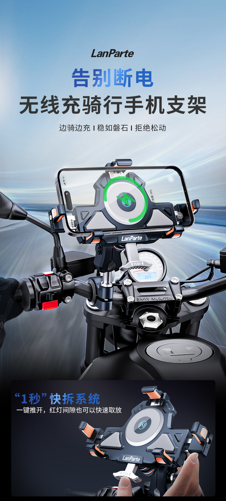 알루미늄 합금 오토바이 전기차 무선 충전 휴대폰 거치대 방진 라이딩 네비게이션 전용 휴대폰 거치대스토어 가기