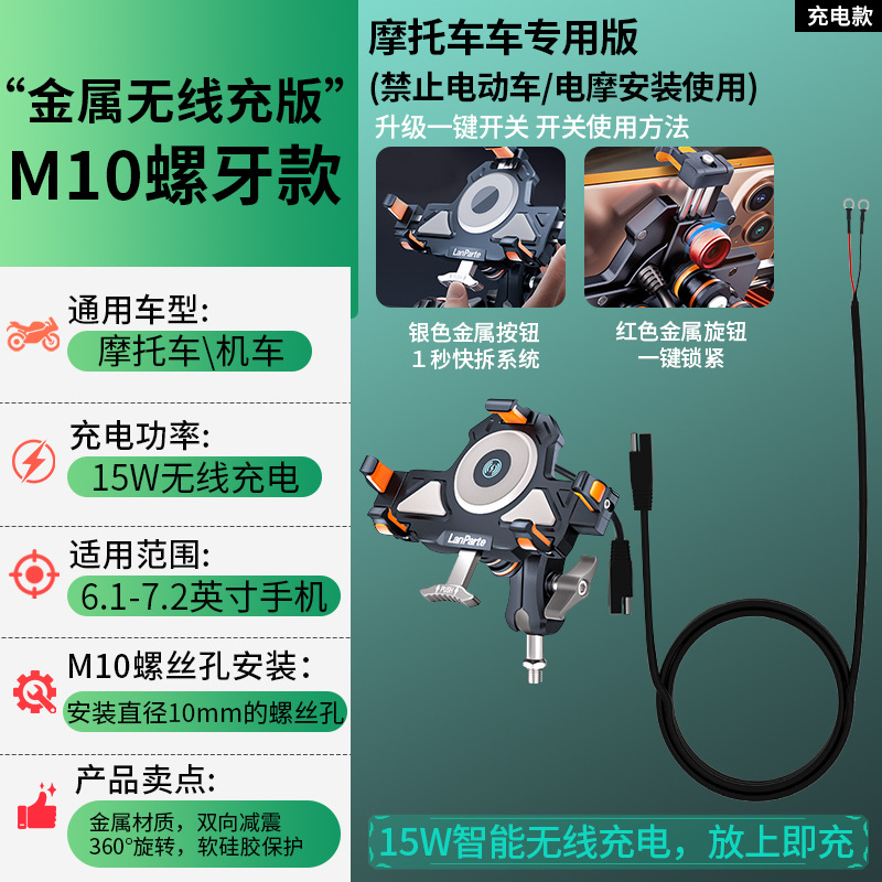 • UBA-MC-M10 (오토바이 메탈 무선 충전 버전) M10 나사산 타입