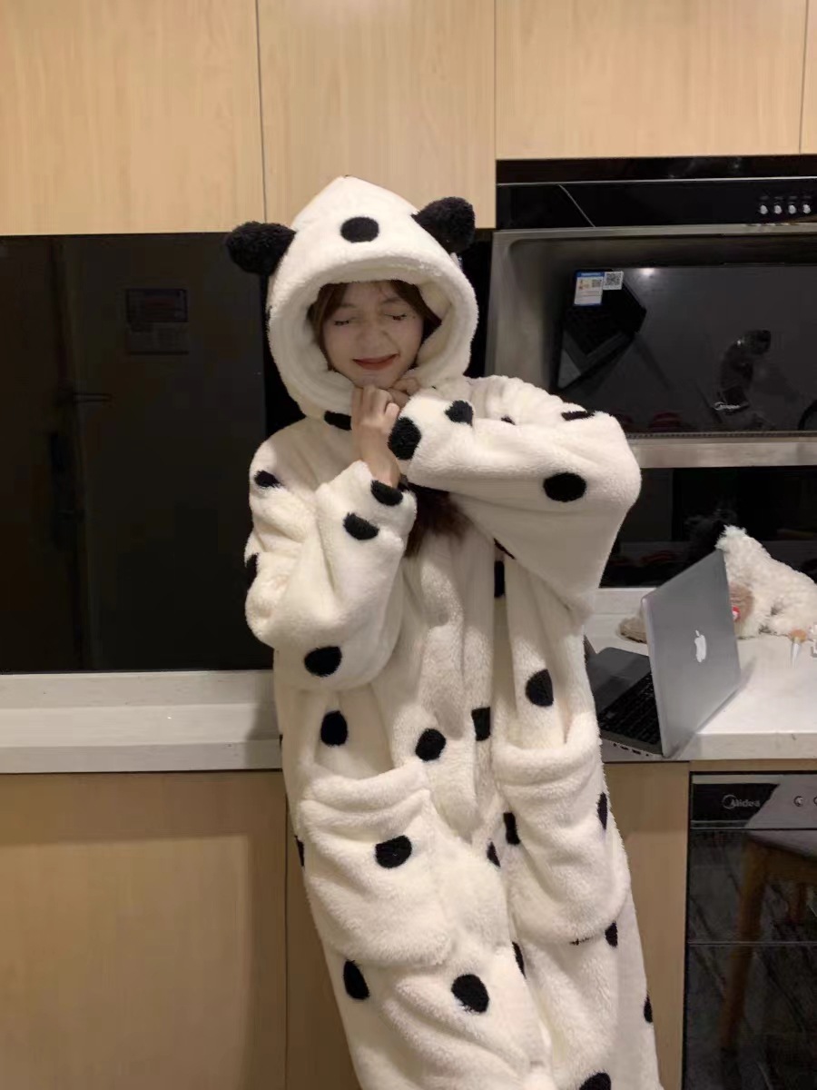 폴카 도트 잠옷 여성 가을 겨울 새 플란넬 홈 옷 산호 양털 두꺼운 긴 달콤한 공주 세트스토어 가기