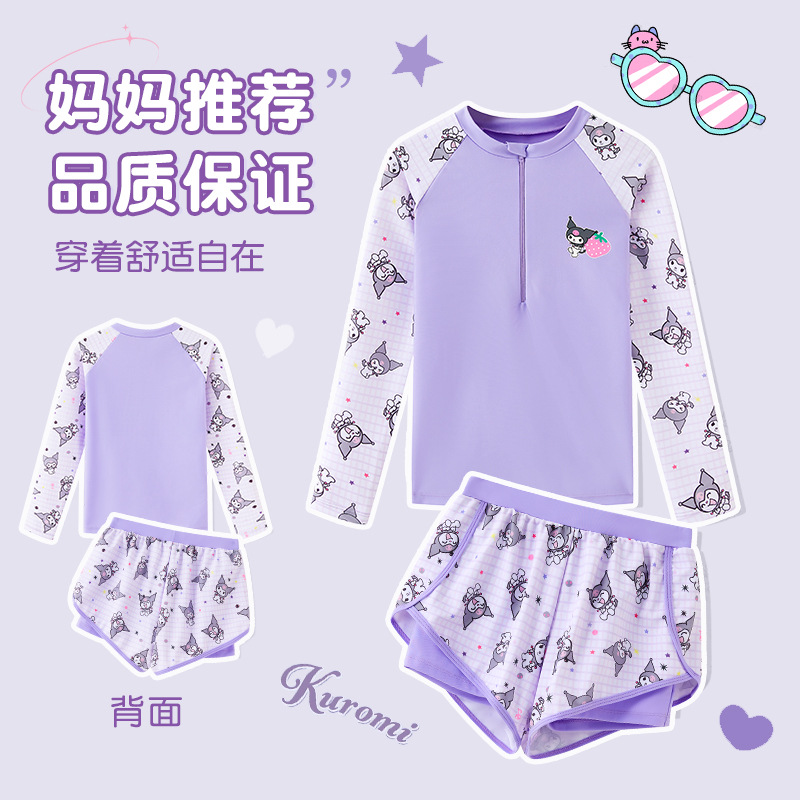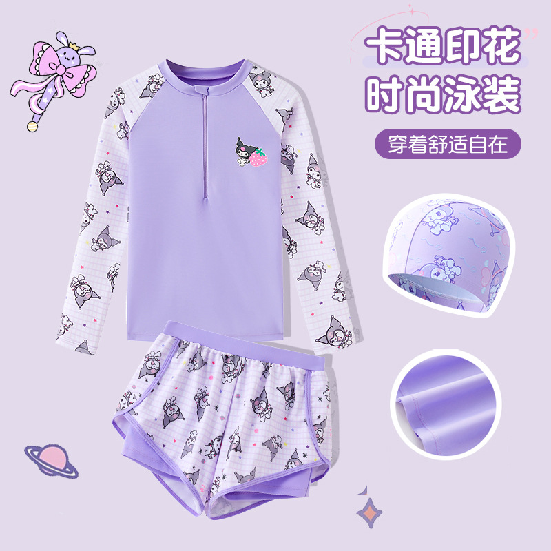 새로운 어린이 분할 수영복 소녀 수영복 Kulomi 롱 슬리브 수영복 중 · 대형 어린이 더블 복서