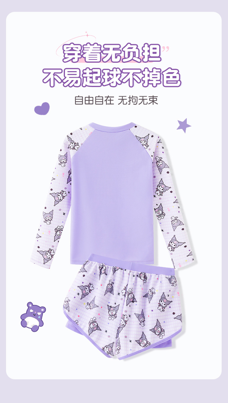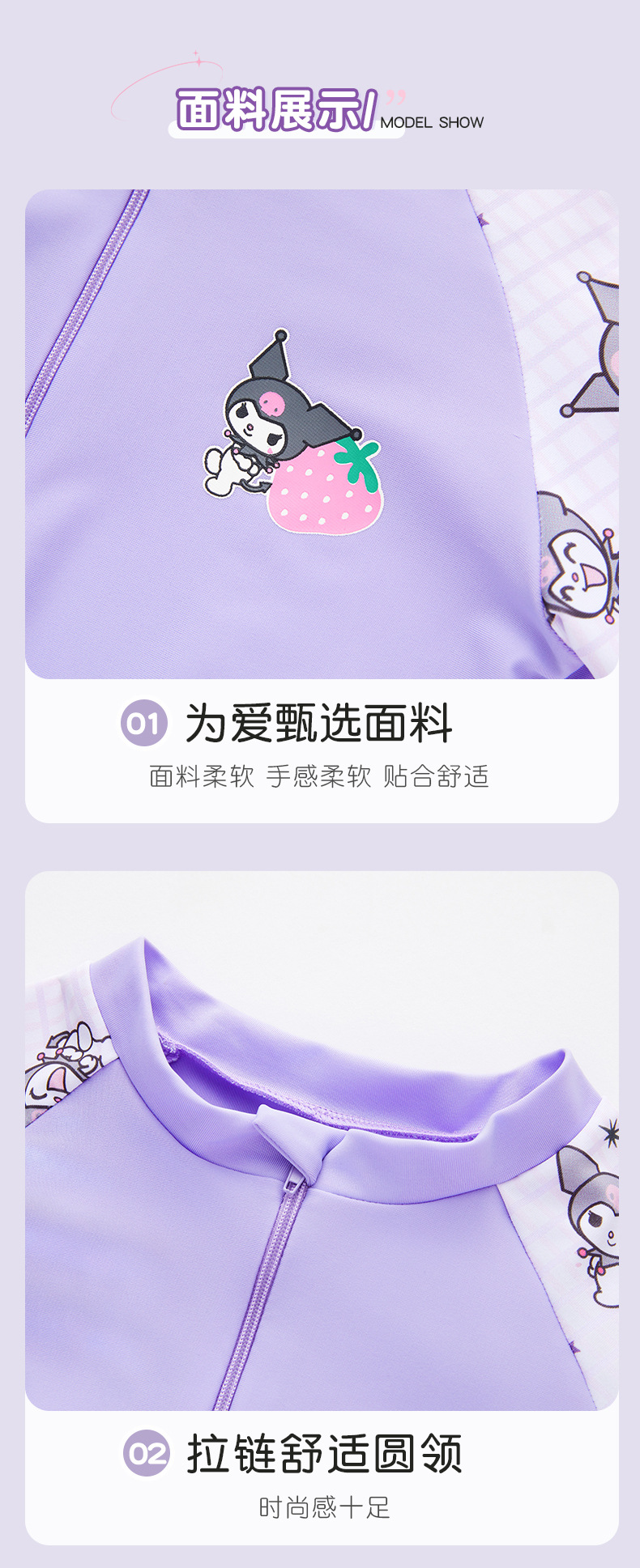 • 보라색 체크무늬(분할) + 쿠로미 수영모 보라색