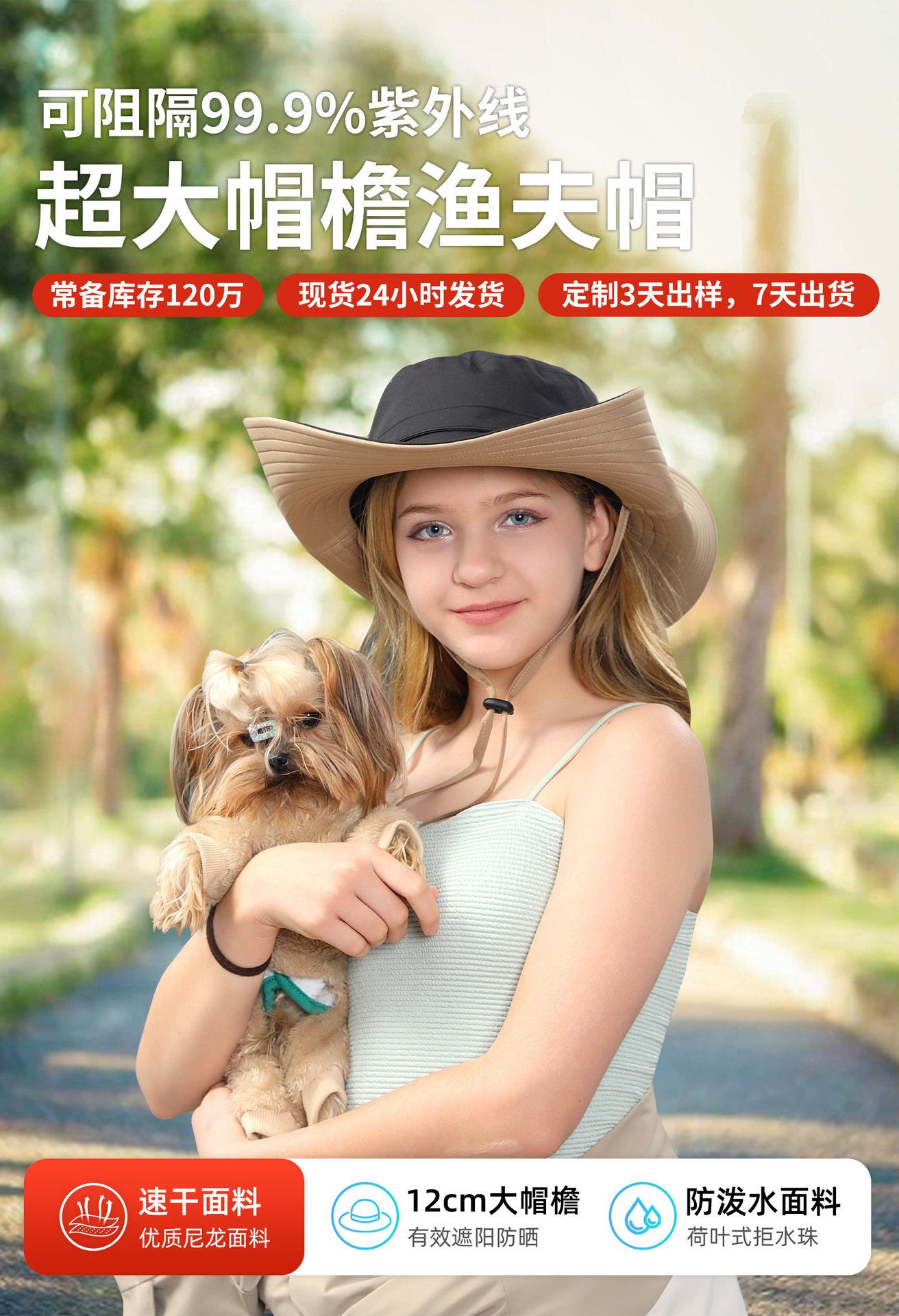 工厂可定制高质量户外大帽沿速干登山帽大头围折叠加大帽檐渔夫帽