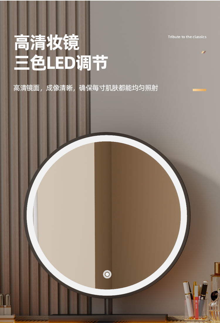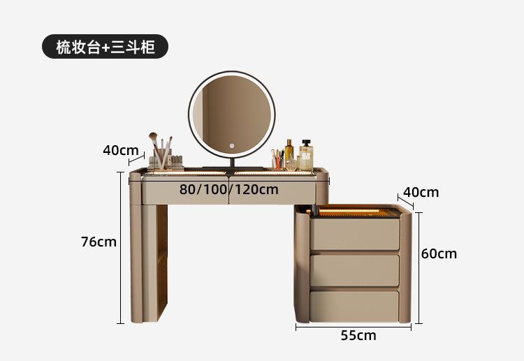• [80.7cm] 테이블 + 서랍장 3개 + 3색 정원거울 + 배색 등받이 의자