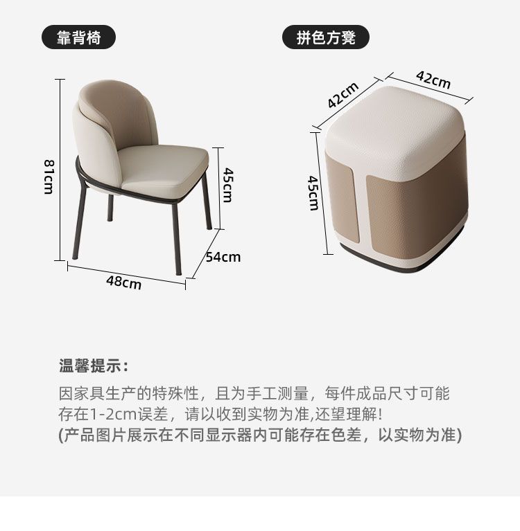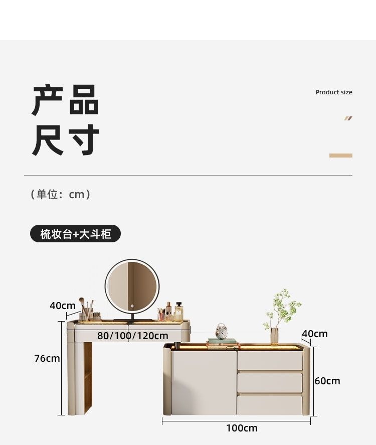 • [80.7cm] 테이블 + 서랍장 4개 + 3색 정원거울 + 배색 등받이 의자