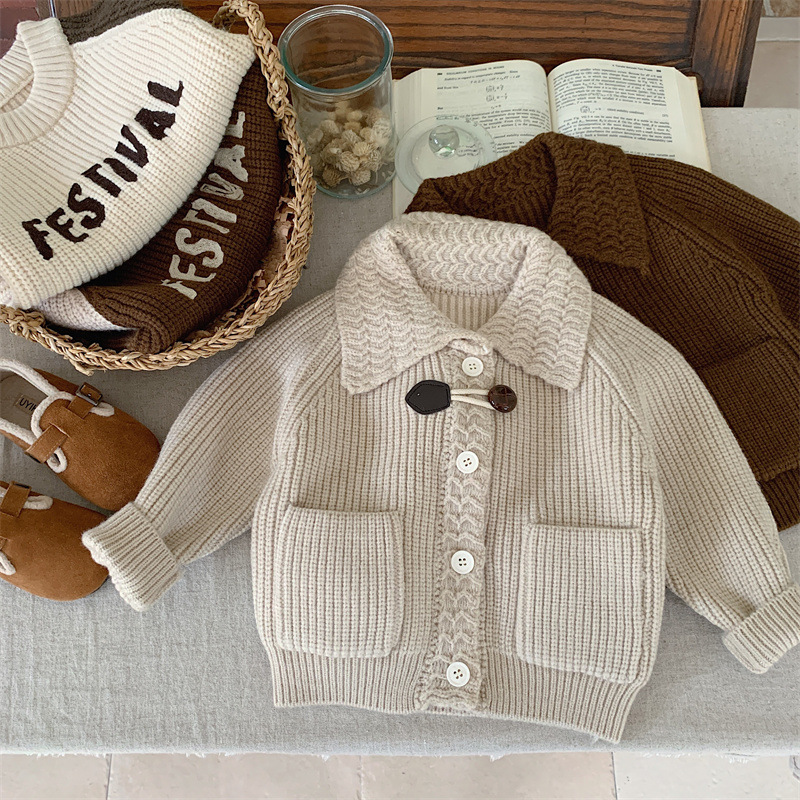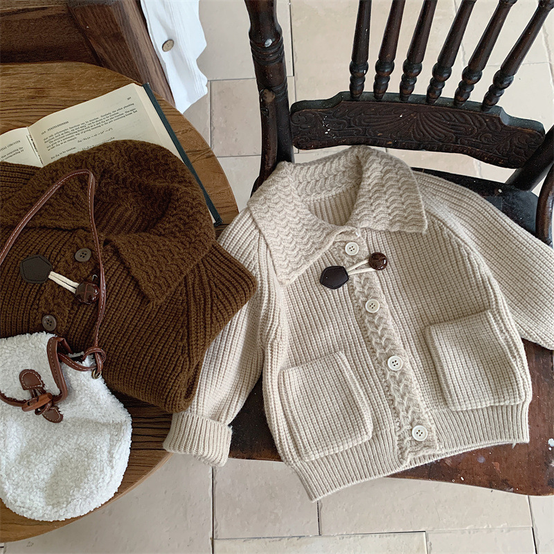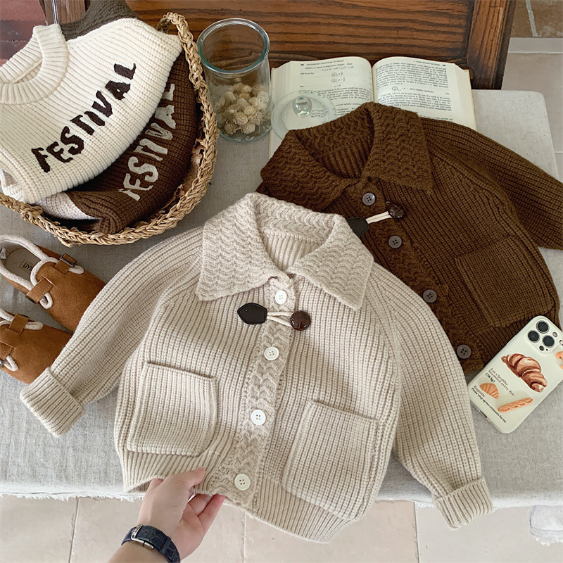 숲풍 아동복 2024 남아 여아 가디건 니트 여아 가을옷 아동 카라 스웨터 레트로 스타일스토어 가기