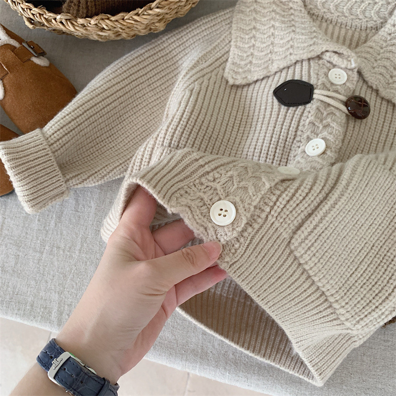 숲풍 아동복 2024 남아 여아 가디건 니트 여아 가을옷 아동 카라 스웨터 레트로 스타일