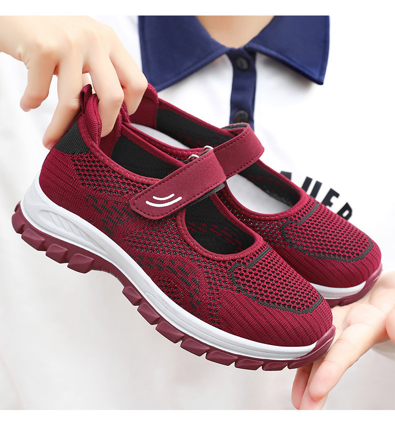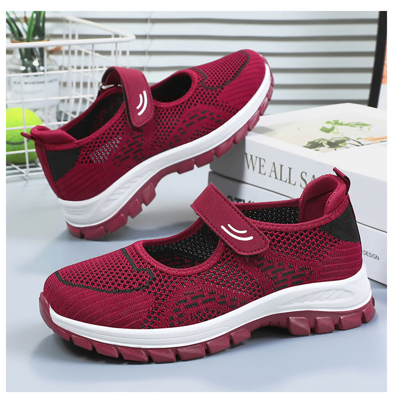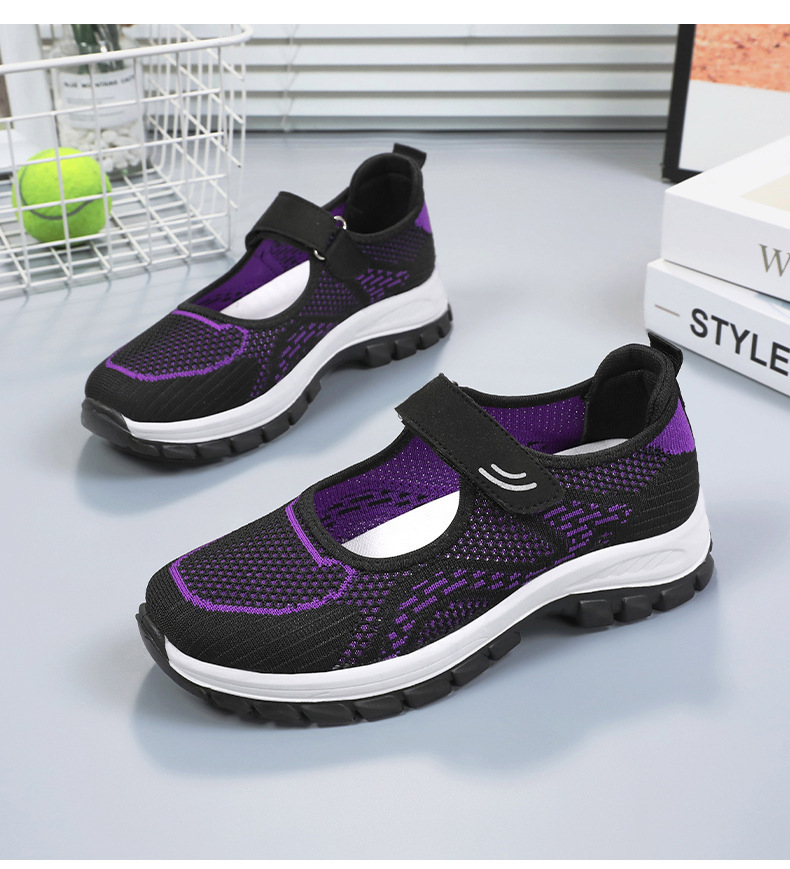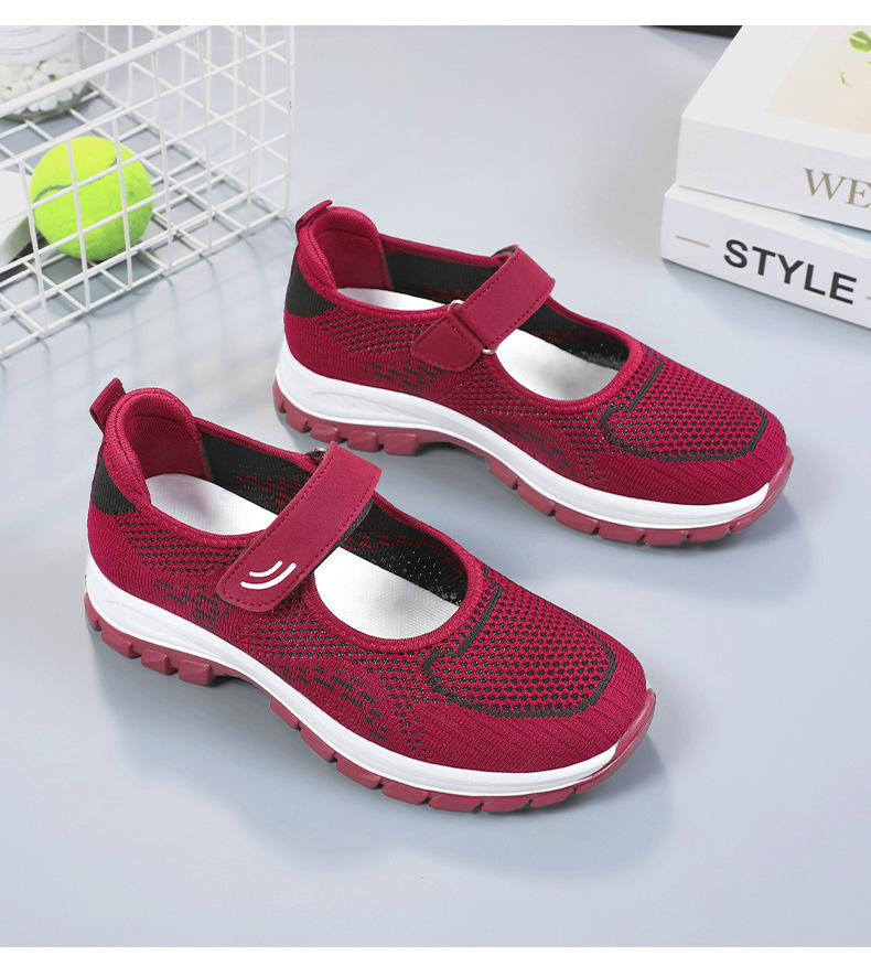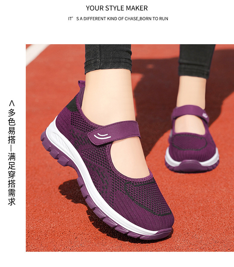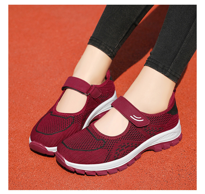 여성 신발 여름 새로운 스타일 중년 및 노인 벨크로 운동화 플라이 짠 메쉬 부드러운 바닥 얕은 입 캐주얼 어머니 신발