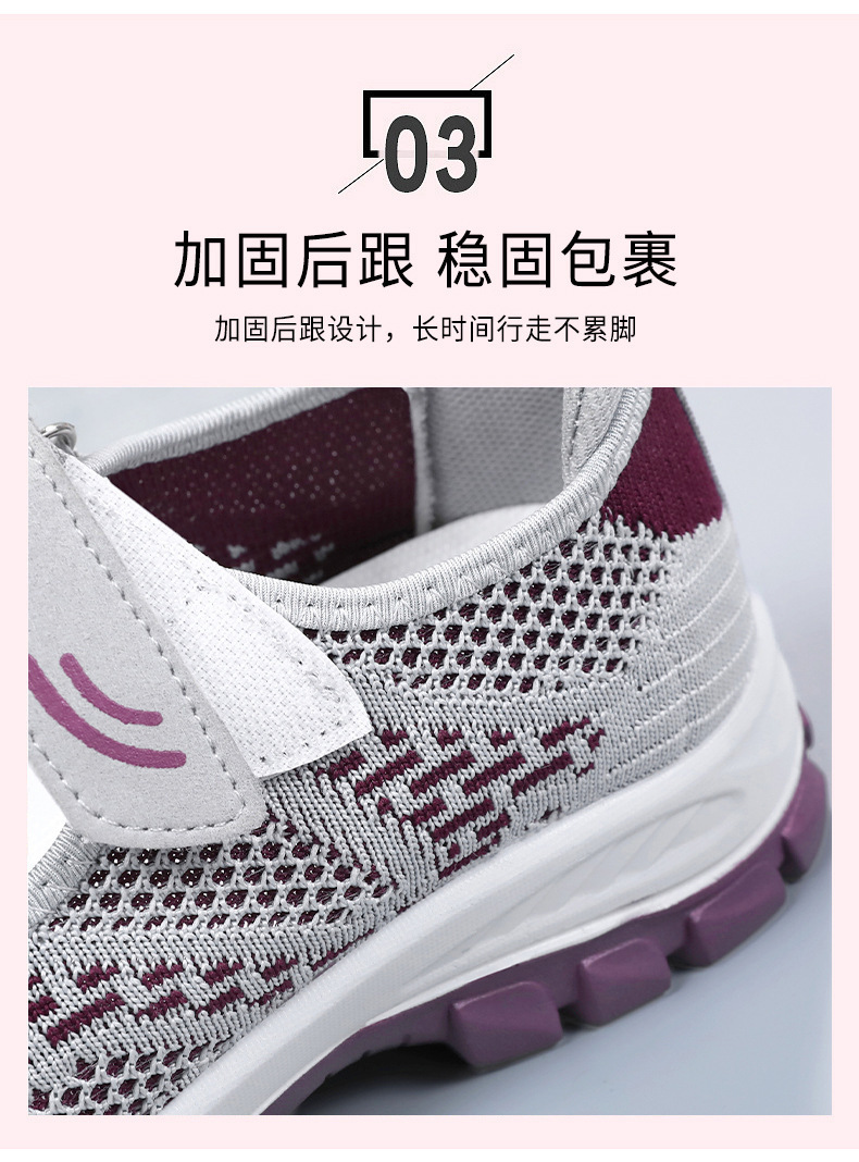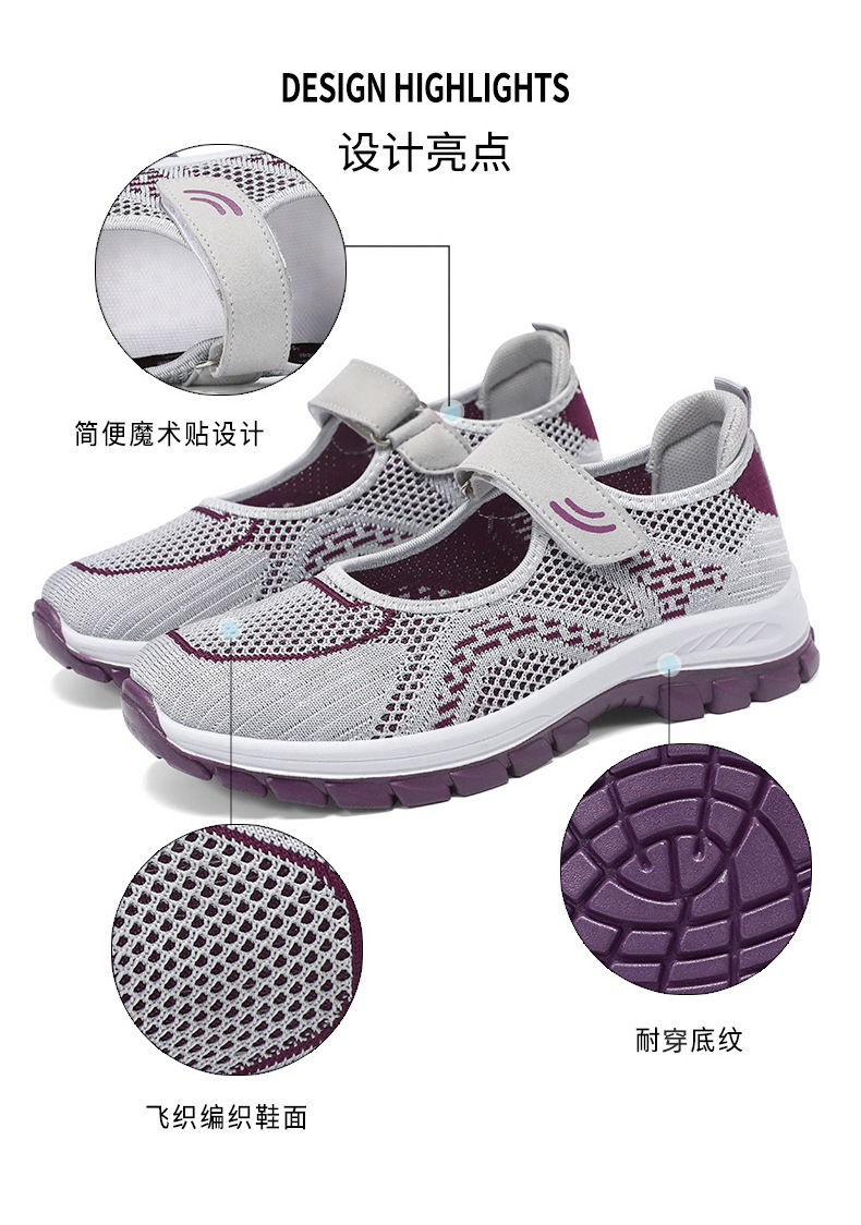 여성 신발 여름 새로운 스타일 중년 및 노인 벨크로 운동화 플라이 짠 메쉬 부드러운 바닥 얕은 입 캐주얼 어머니 신발스토어 가기