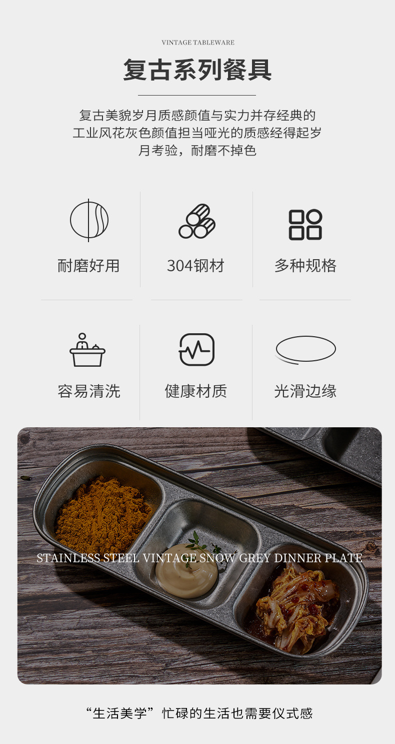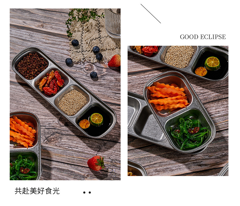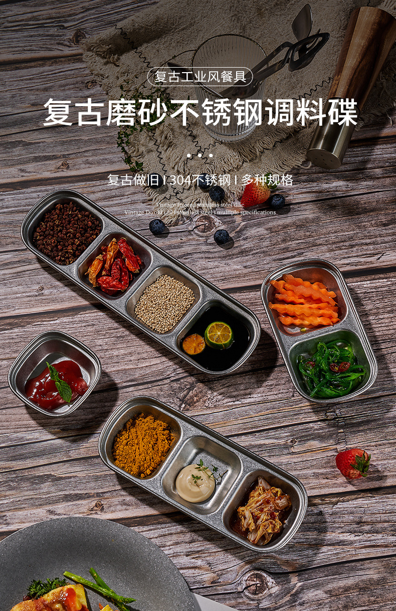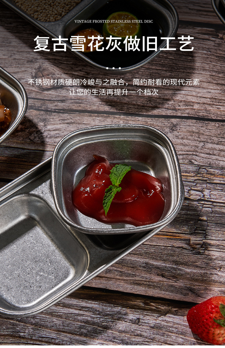 빈티지 스테인레스 스틸 한국 스타일 맛 접시 양념 접시 뜨거운 냄비 양념 요리 소스 접시 바베큐 식기 2 포트 3 포트스토어 가기