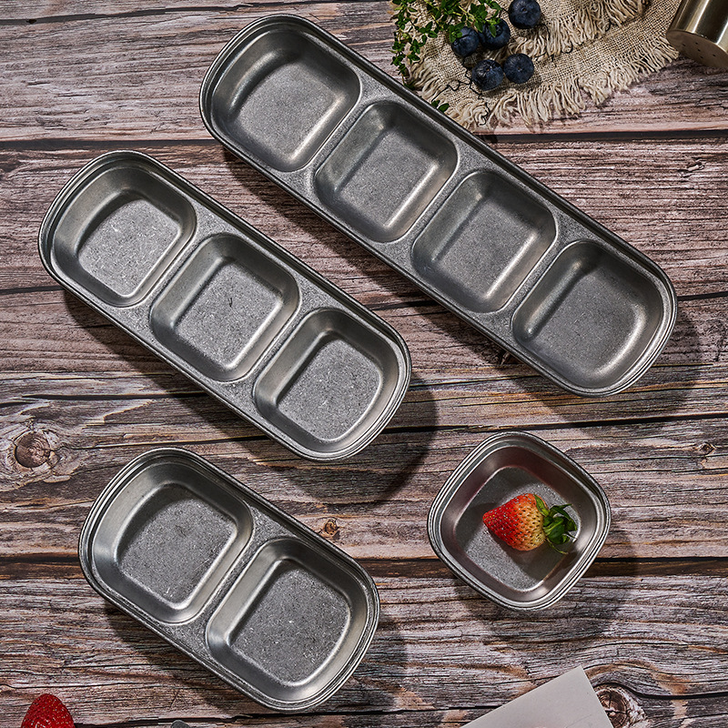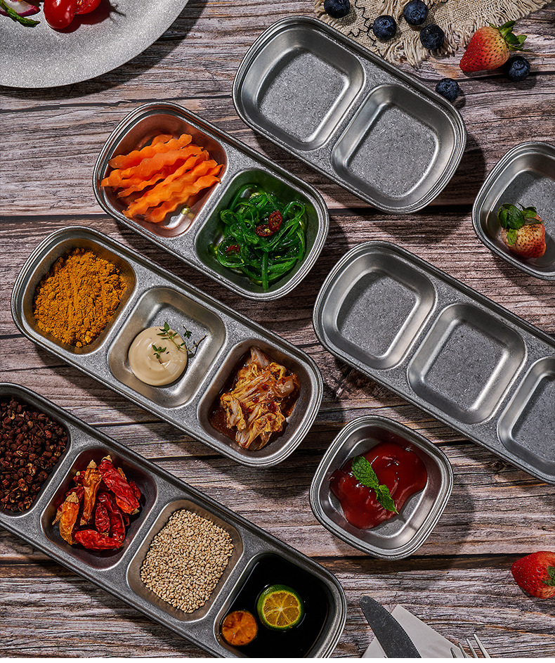 빈티지 스테인레스 스틸 한국 스타일 맛 접시 양념 접시 뜨거운 냄비 양념 요리 소스 접시 바베큐 식기 2 포트 3 포트