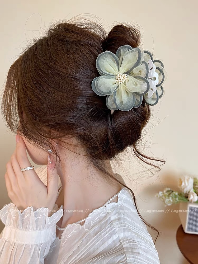 스노우 버드 동백 ~ 신선한 녹색 꽃 클립 여름 요정 메쉬 디스크 상어 클립 고급 헤드웨어