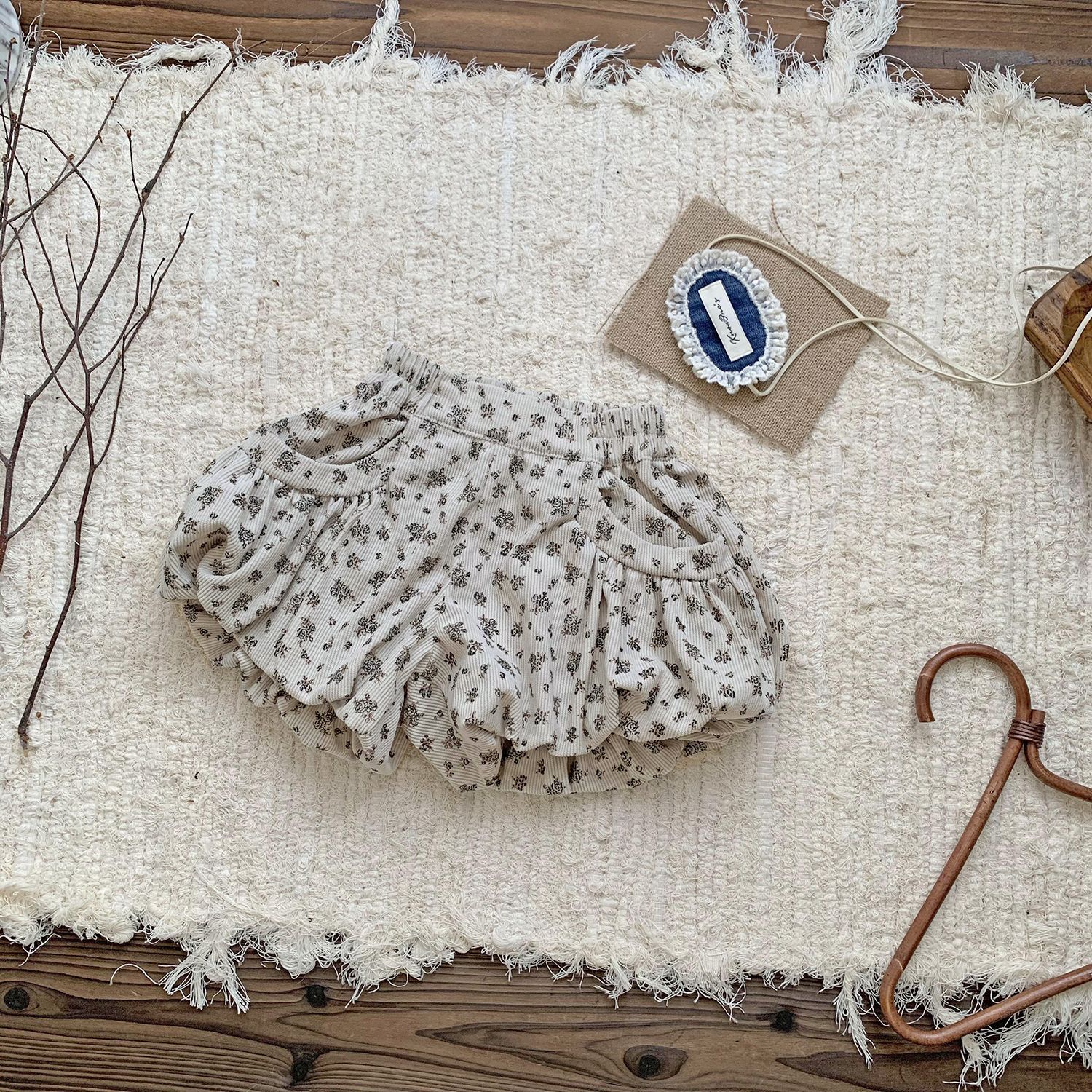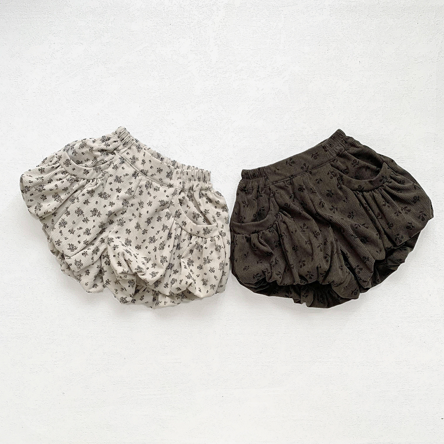 Cutemily Girls 아동복 가을 및 겨울 Ins Corduroy 반바지 여성 아기 귀여운 꽃 구덩이 랜턴 엉덩이 반바지