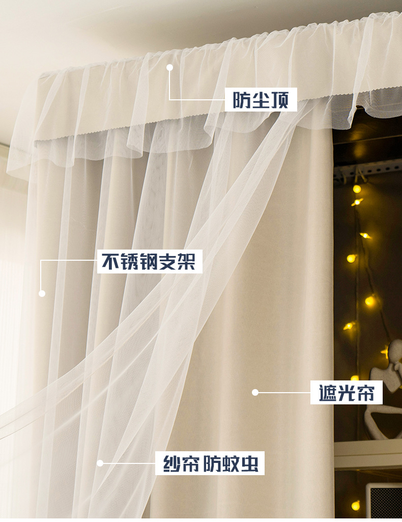 기숙사 침대 커튼 전체 음영 상부 두꺼운 강한 음영 모기장 대학 학생 기숙사 낮은 테이블 커튼 Instagram 스타일 침대 커튼스토어 가기