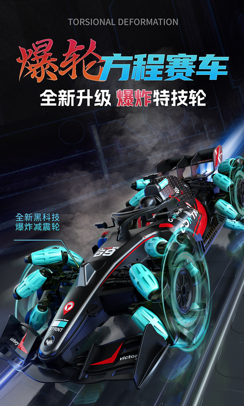 • 사무라이 블랙 [라이트 스프레이 엑스트라 대형 폭발 휠] 사이드 포뮬러 F1 레이싱 카