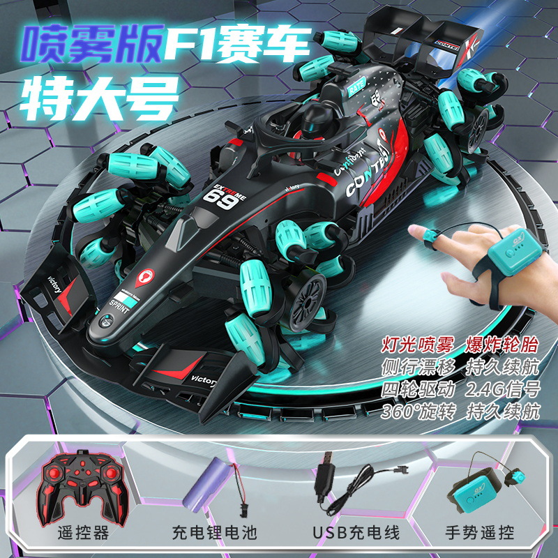 어린이 제스처 유도 원격 제어 자동차 스프레이 4 륜 구동 F1 방정식 레이싱 카 충전 전기 스턴트 드리프트 장난감 소년