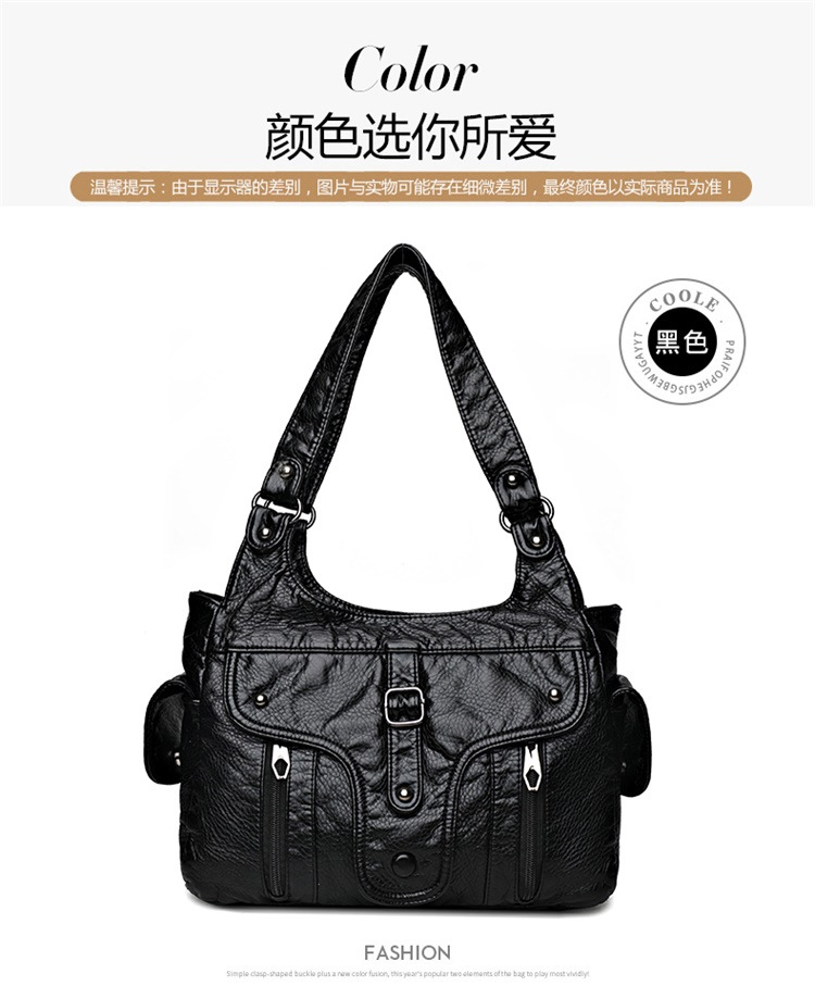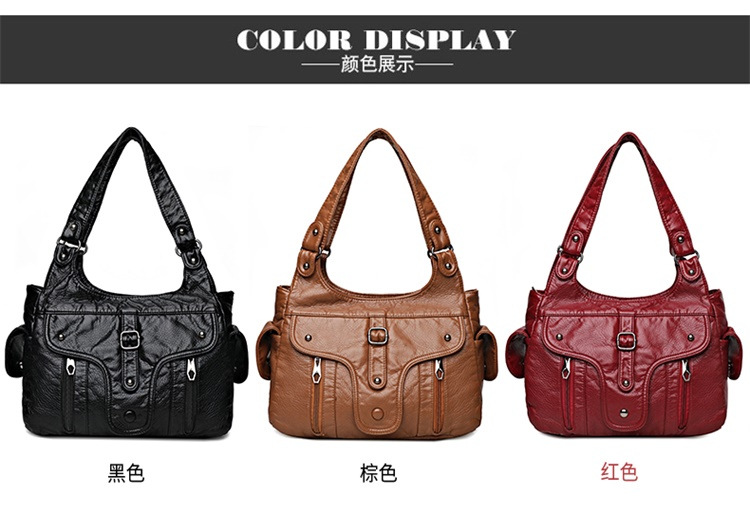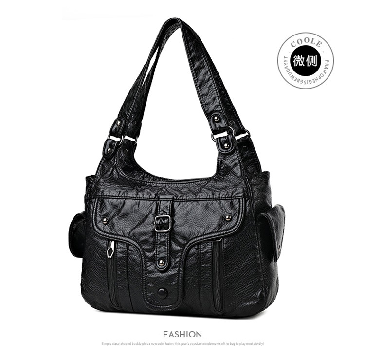 대외 무역 여성 가방 새로운 캐주얼 유럽과 미국의 부드러운 가죽 핸드백 세탁 가죽 여성용 어깨 가방 언더암 가방 손목 가방스토어 가기