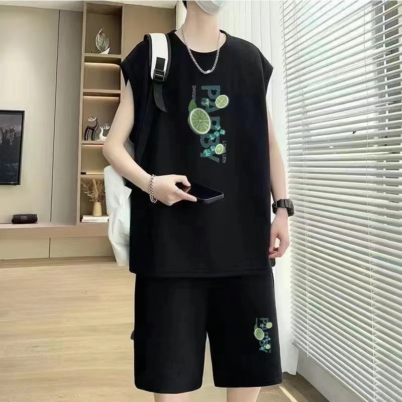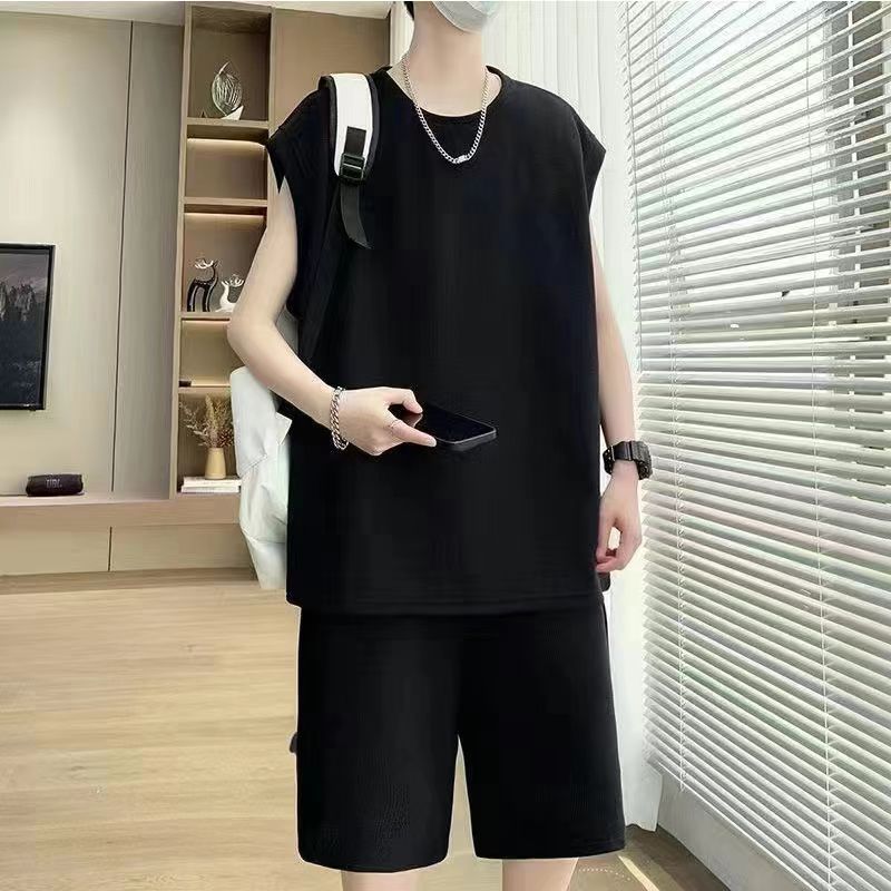 빅 보이의 여름 민소매 조끼 스포츠 세트 안티 필링 홍콩 스타일 조끼 세트 캐주얼 통기성 남성 세트