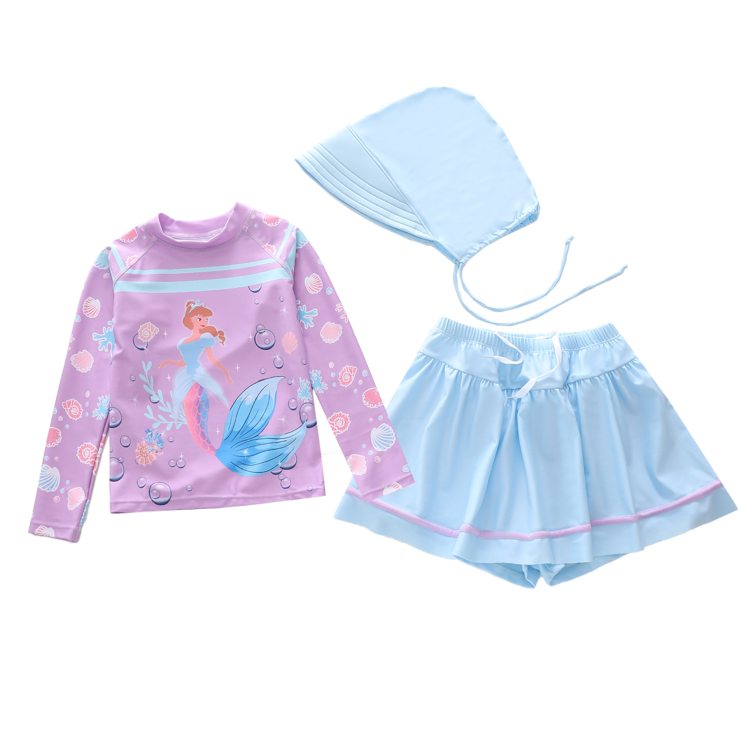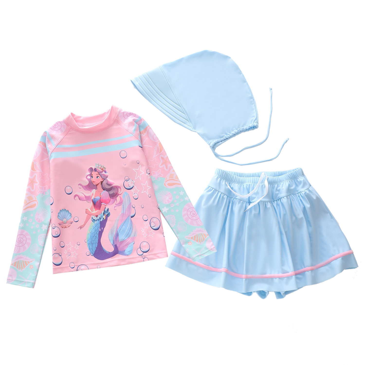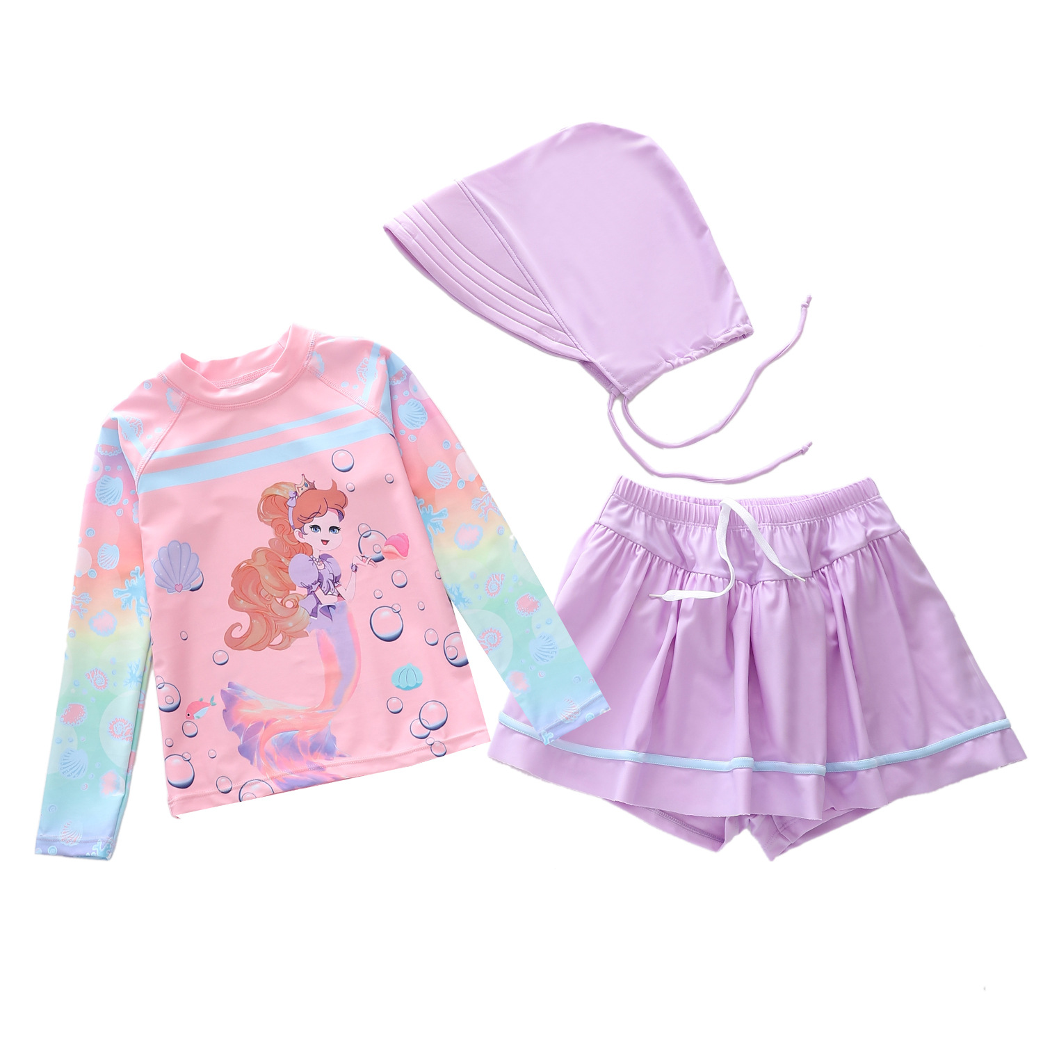 2024 새로운 어린이 수영복 여아 스플릿 수영복 작은 중간 및 큰 아이 인어 스포츠 스타일 선 스크린 수영 세트