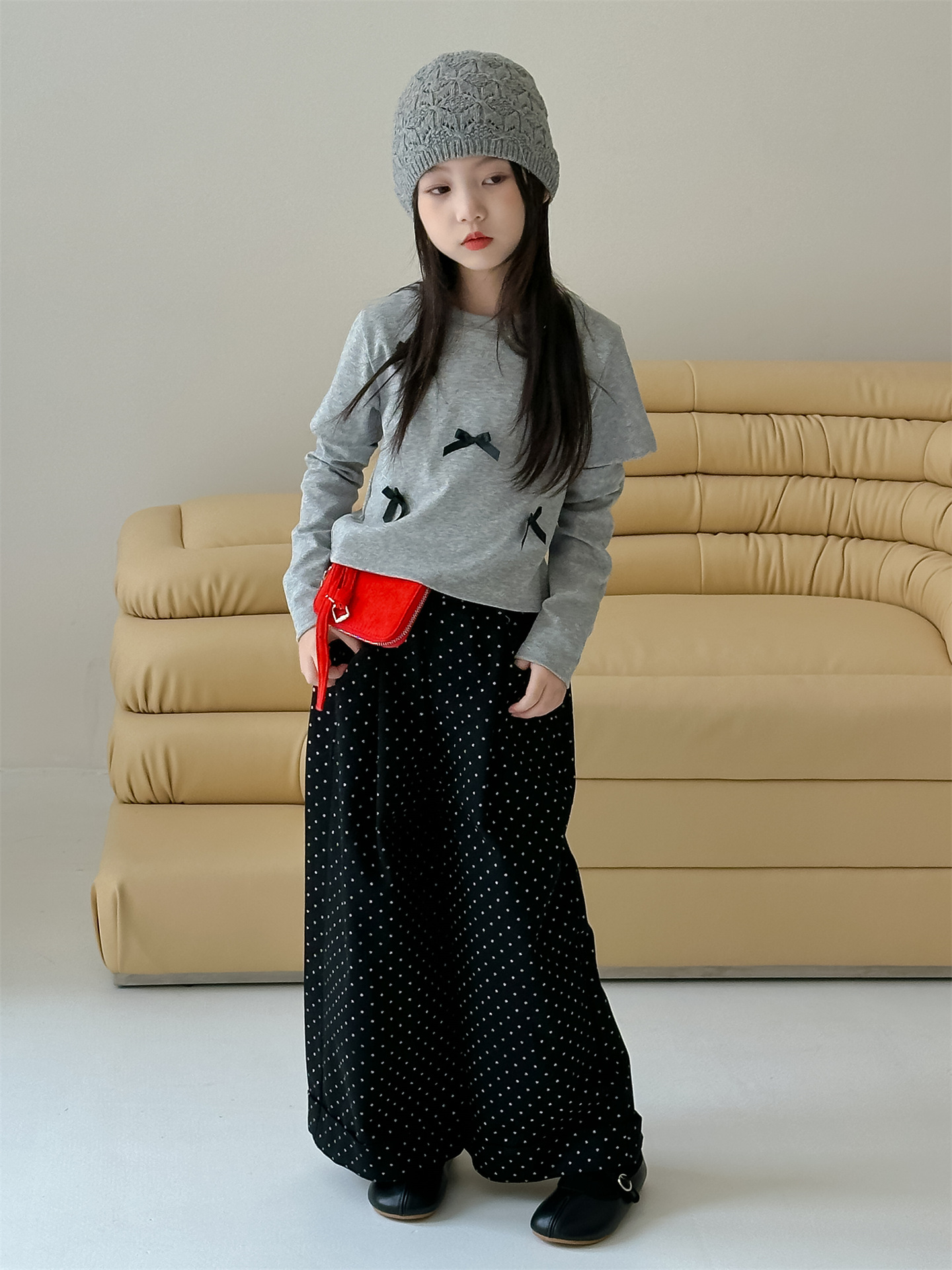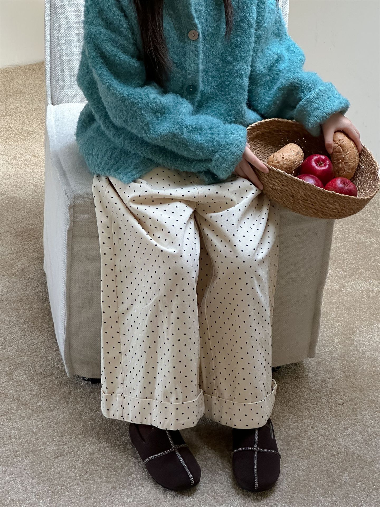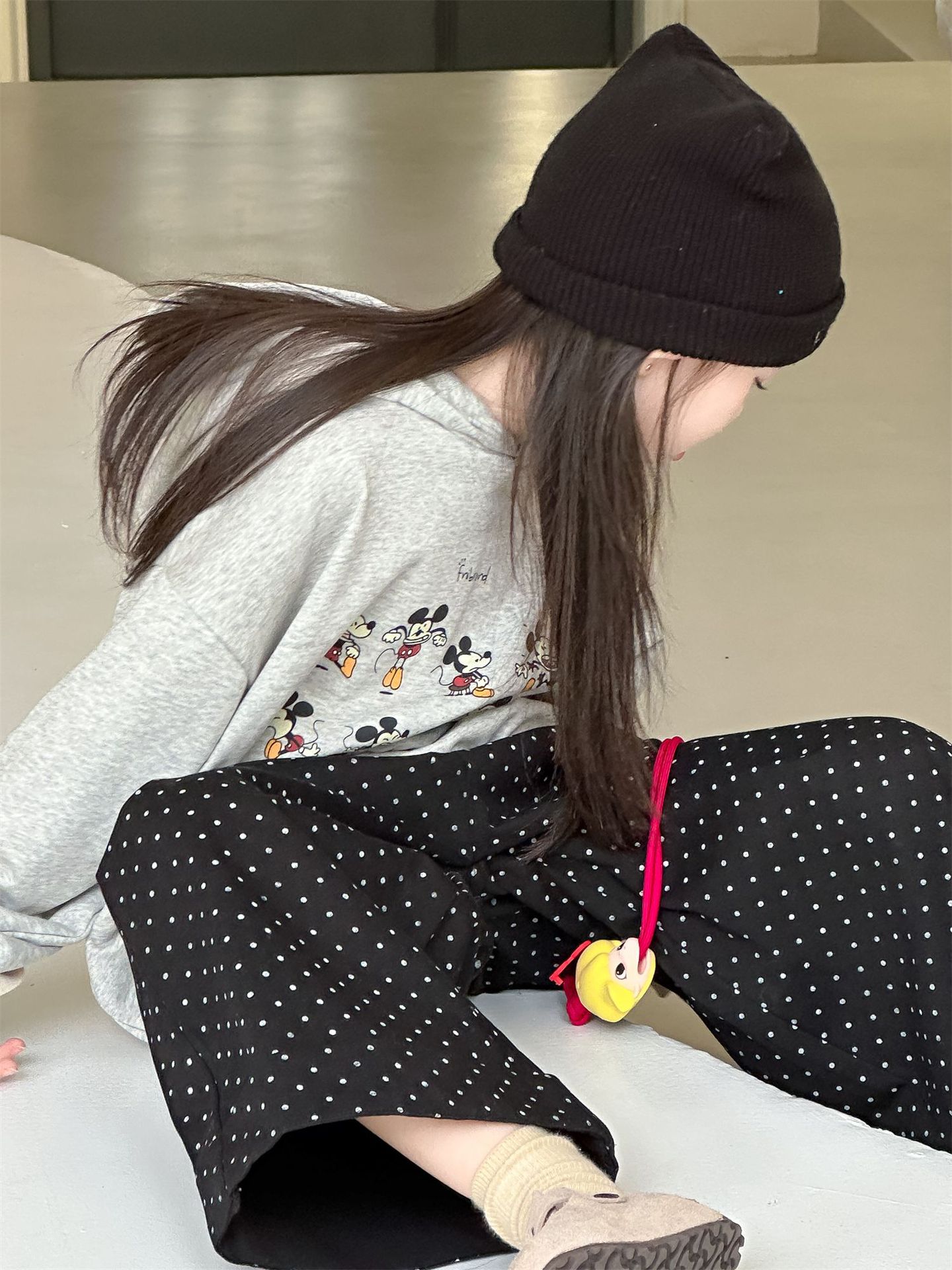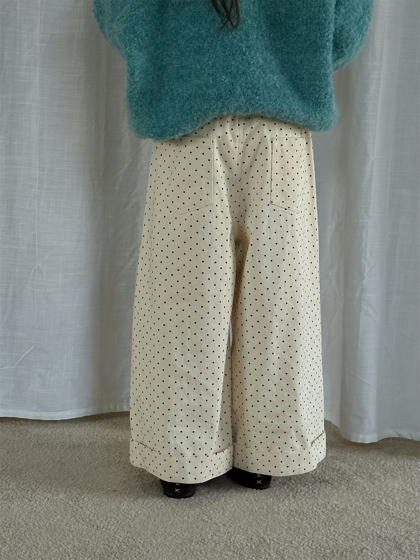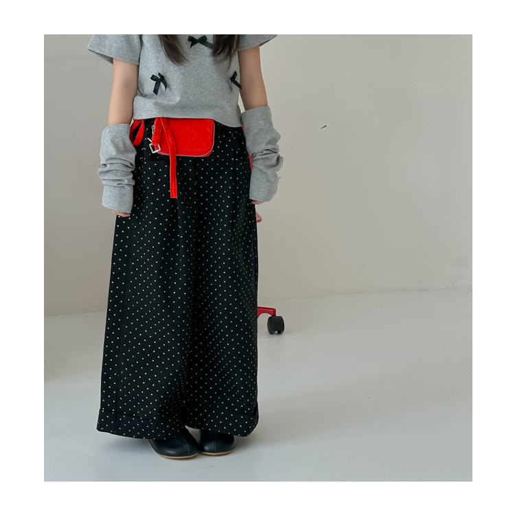 화이앤쉰 아동복 2025 봄 신상 여아 블랙 디자인 루즈핏 드레이프 한국풍 레트로 물방울 무늬 바지스토어 가기