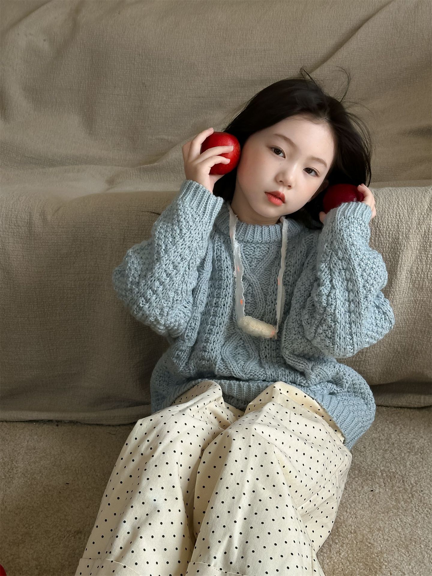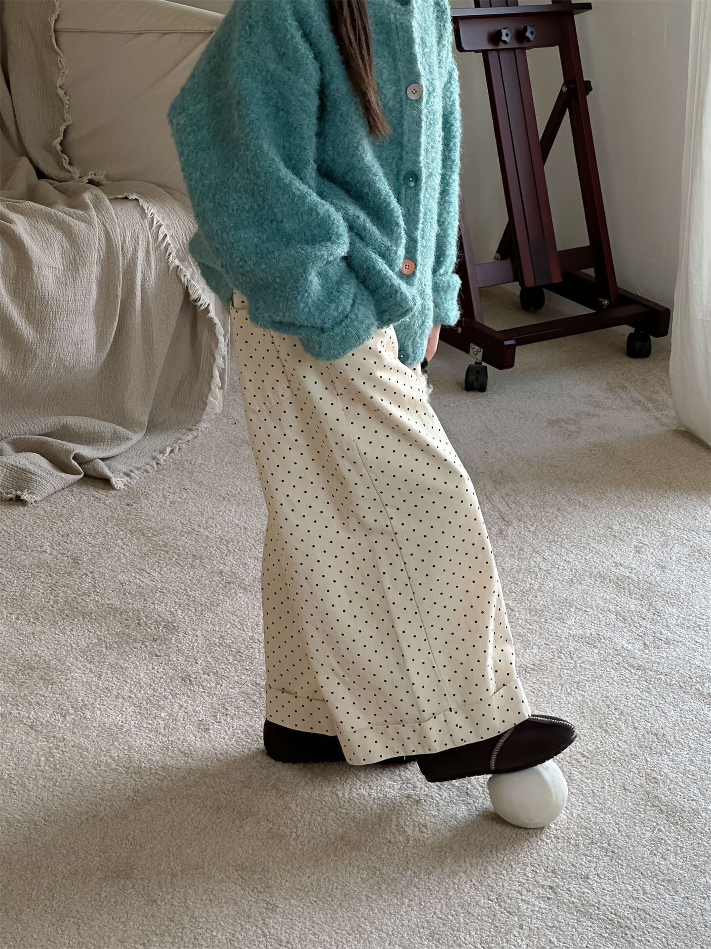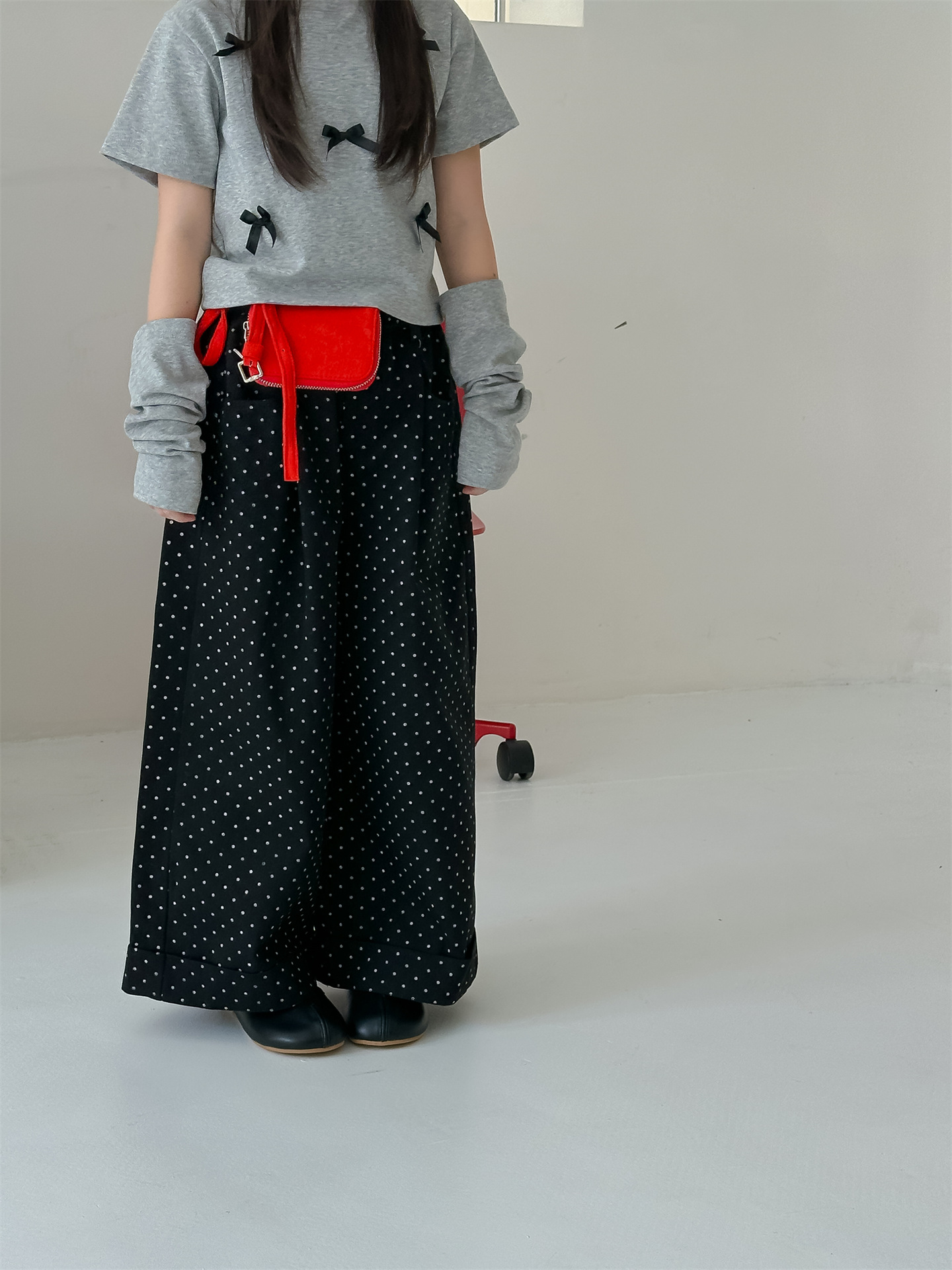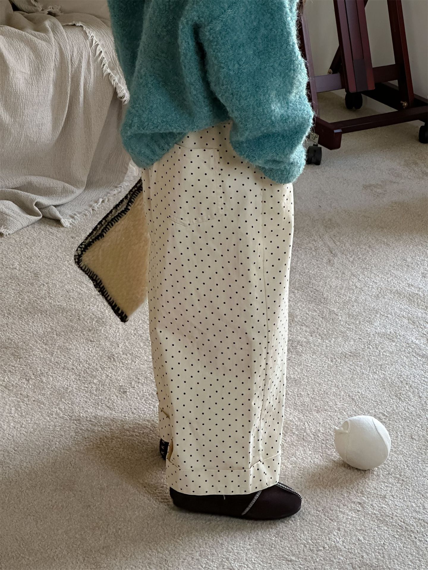 화이앤쉰 아동복 2025 봄 신상 여아 블랙 디자인 루즈핏 드레이프 한국풍 레트로 물방울 무늬 바지스토어 가기