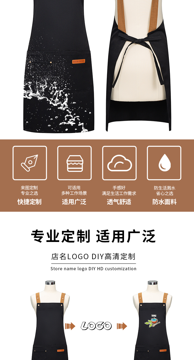방수 앞치마 케이터링 특수 작업 옷 로고 커피 우유 차 가게 웨이터 허리 여성의 새로운 국경
