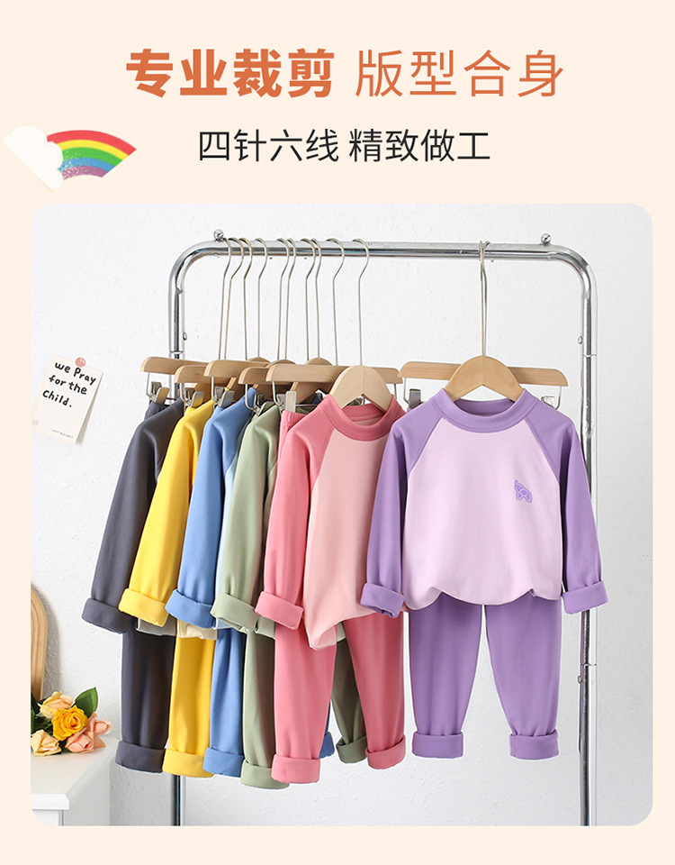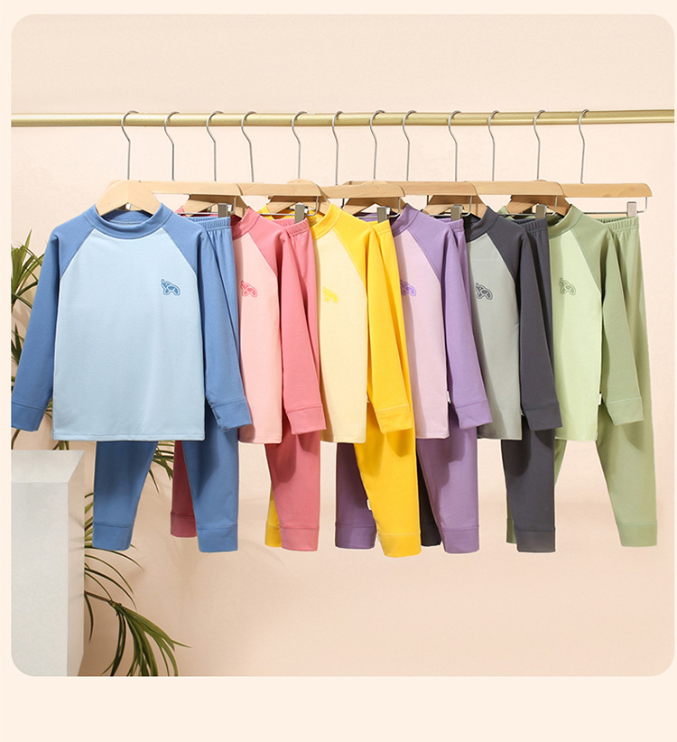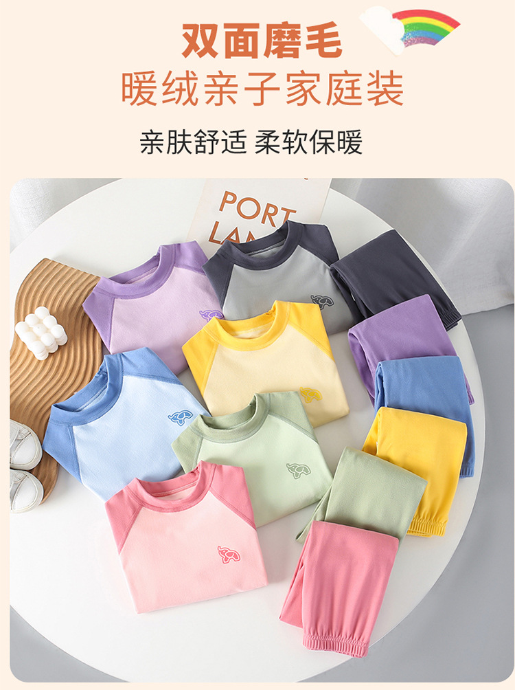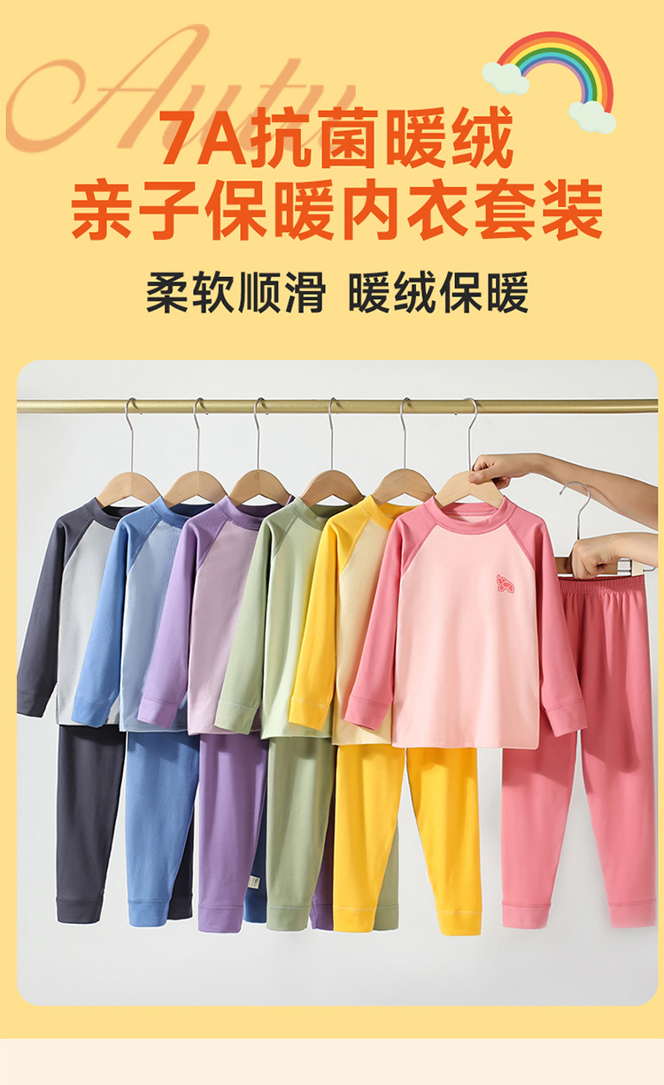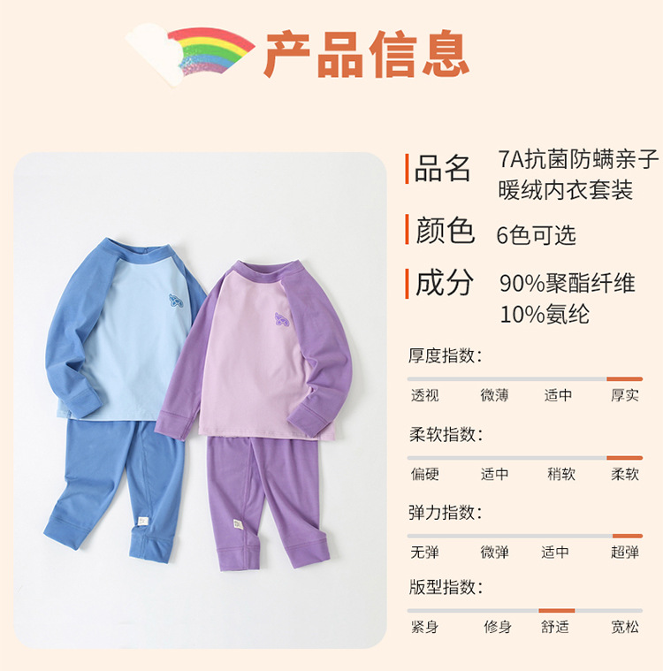 중년 어린이 항균 및 안티-진드기 세트 가을 및 겨울 홈 옷 부모-자식 뼈없는 속옷 어린이 칼라 가을 옷과 바지스토어 가기