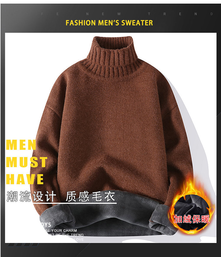 겨울 통합 십대 남성 단색 터틀넥 스웨터 스웨터 기모 두꺼운 베이스 따뜻한 스웨터스토어 가기