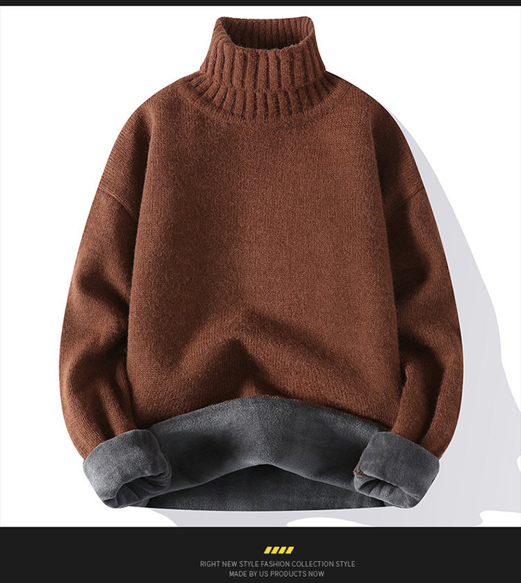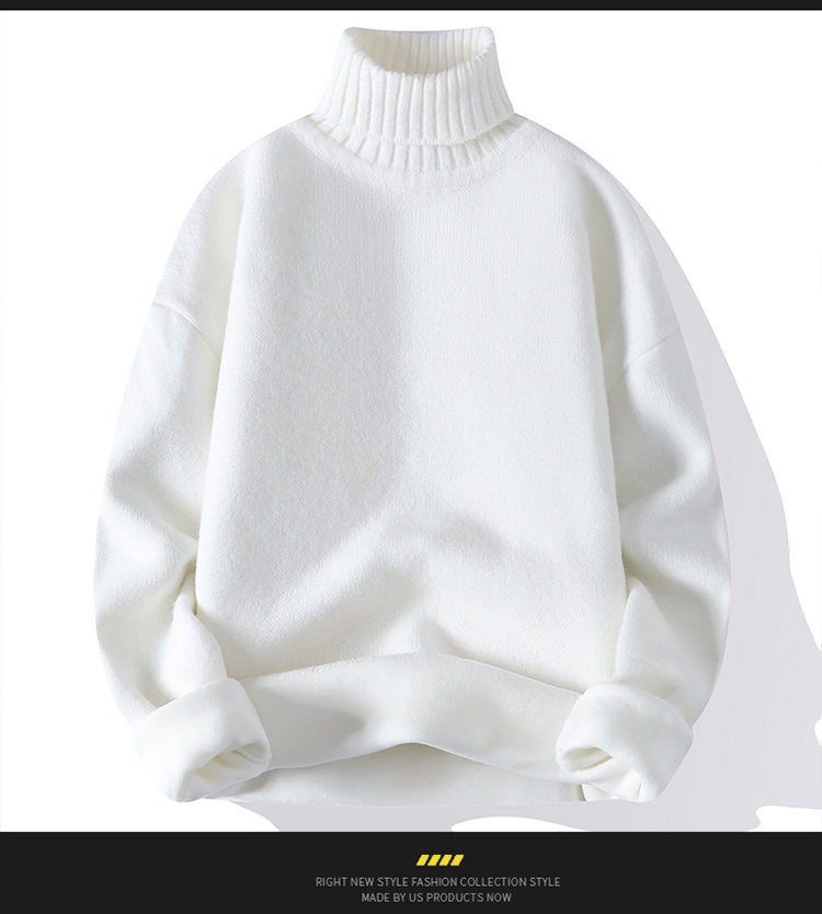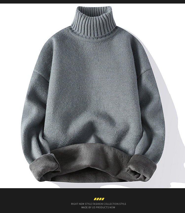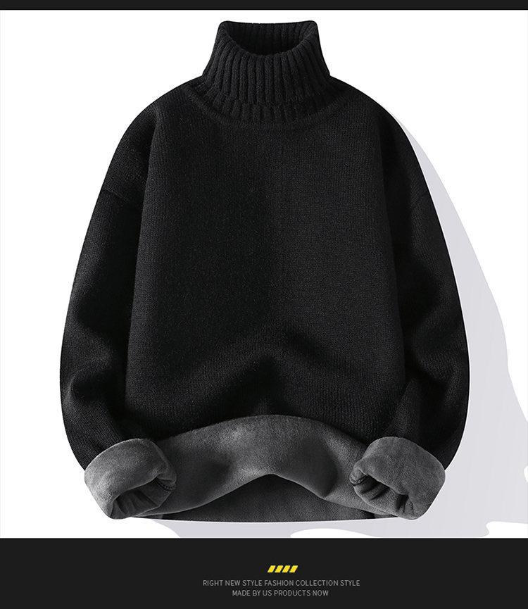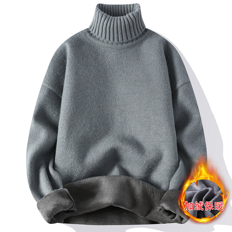 겨울 통합 십대 남성 단색 터틀넥 스웨터 스웨터 기모 두꺼운 베이스 따뜻한 스웨터